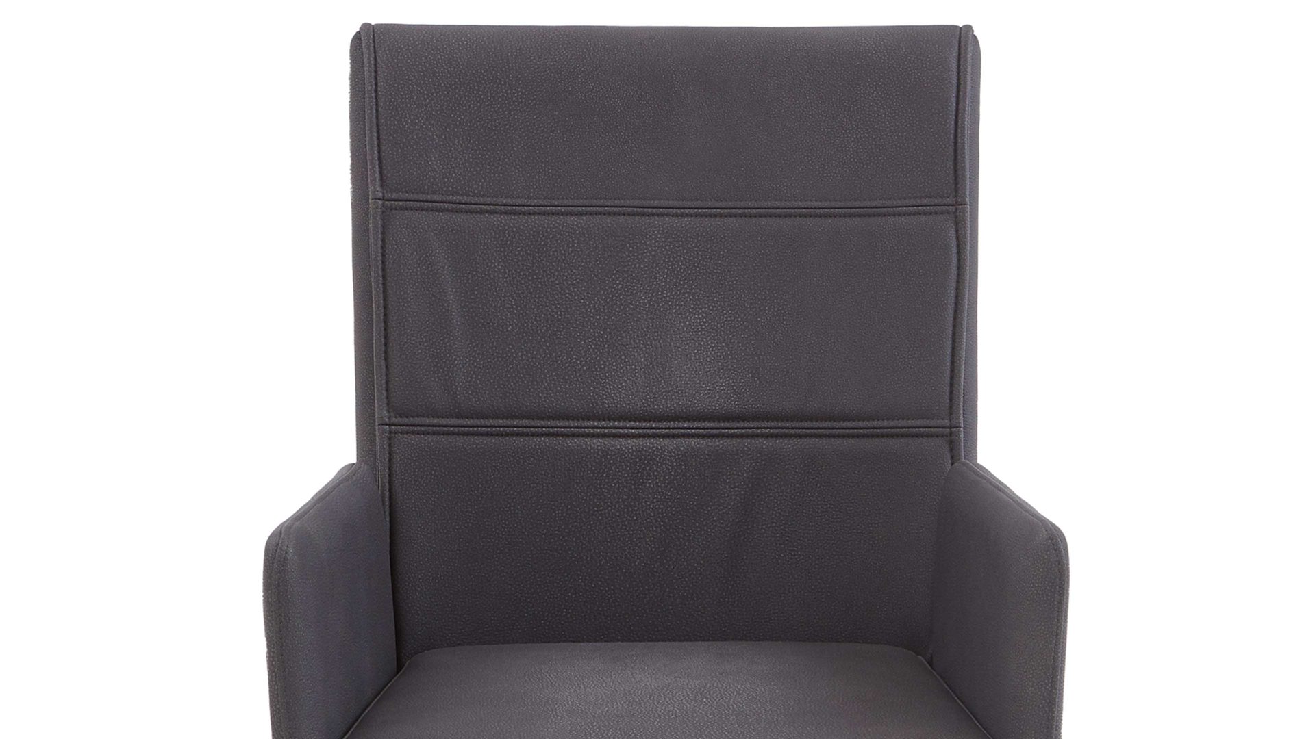 Der attraktive NIEHOFF Polsterstuhl Bornholm mit Armlehnen besteht aus qualitativ hochwertigen Materialien und präsentiert sich modern designt. Er kombiniert ein massives Eichegestell mit einem anthrazitfarbenen Microfaserbezug. Der Sitz ist mit einer angenehmen Gurt-Federung ausgestattet und bietet hohen Komfort. Auf ca. 56 x 97 x 59 cm (BxHxT) belaufen sich die Maße des Stuhls.