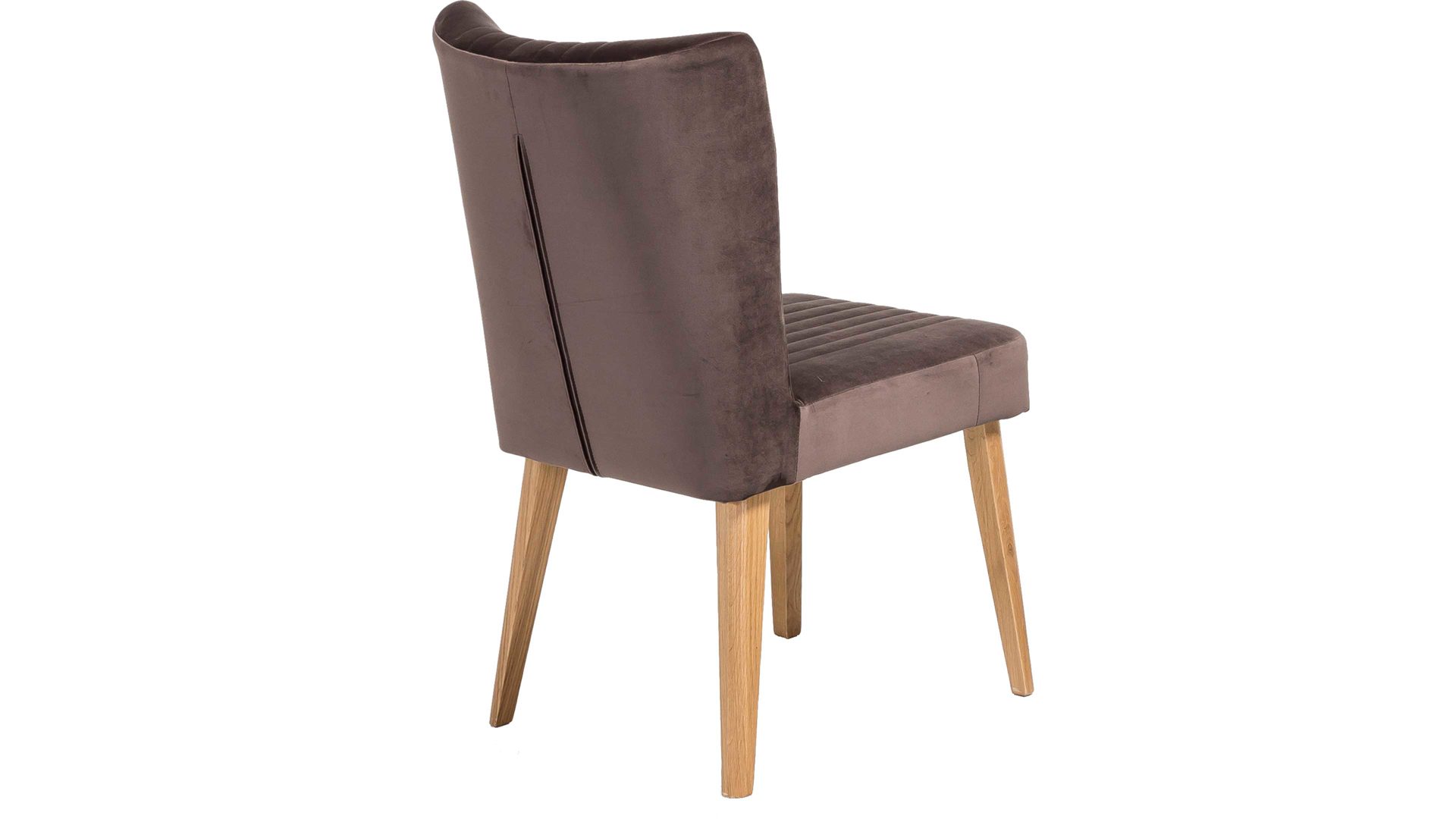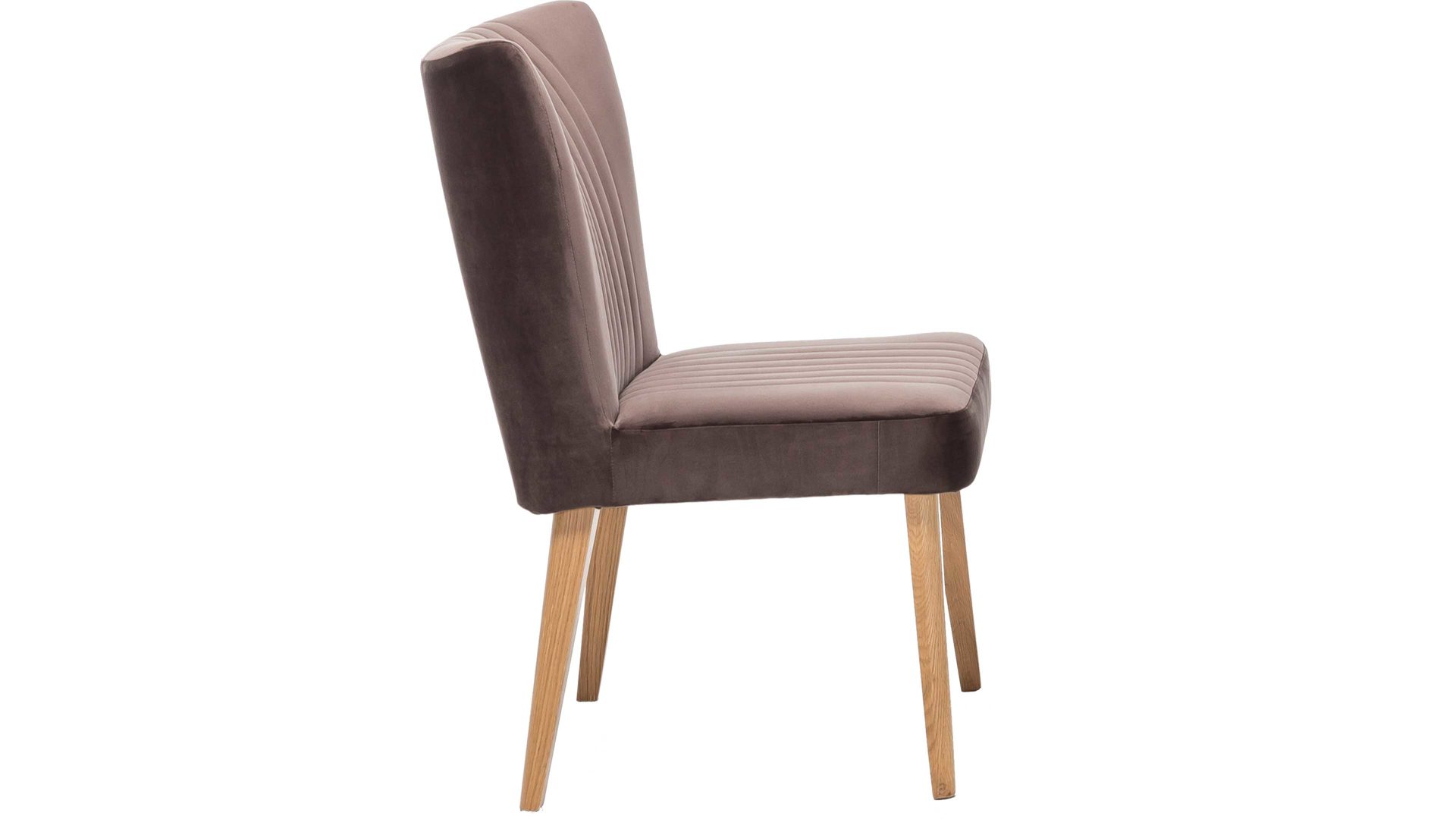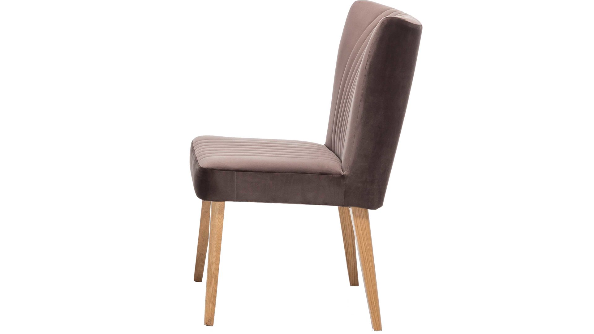 Im modernen Samtlook präsentiert sich dieser hochwertige Polsterstuhl mit braunem Bezug. Aufwendige Steppnähte, die auf Sitz und Rücken angebracht sind, verleihen dem Sitzmöbel eine raffinierte Optik. Stellen Sie den funktionalen Stuhl mit den Maßen von ca. 46 x 92 x 66 cm (BxHxT) am besten gleich zu mehreren an einen Esstisch aus Eiche, denn das Holzgestell des Sitzmöbels besteht ebenfalls aus Eiche natur.