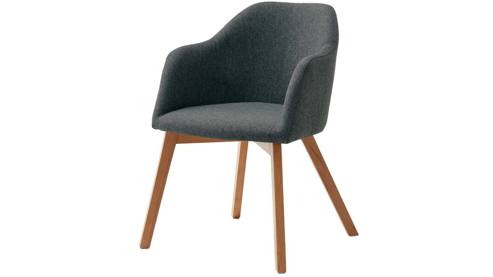 Der Armlehnstuhl Charly präsentiert sich modern und stilvoll designt. Darüber hinaus weiß er in puncto Komfort zu überzeugen. Lackierte Eichenholzfüße bilden die robuste Basis. Das natürliche Material sorgt einerseits für die nötige Stabilität und bringt andererseits ein warmes, einladendes Flair in den Raum. Attraktiv abgerundet wird der Vierfußstuhl durch den grauen Webstoffbezug. Die schlichte Farbe wirkt überaus elegant und harmoniert vorzüglich mit den Holzfüßen. Einen feinen Akzent setzt die Steppnaht im Rücken des Schalensitzes.