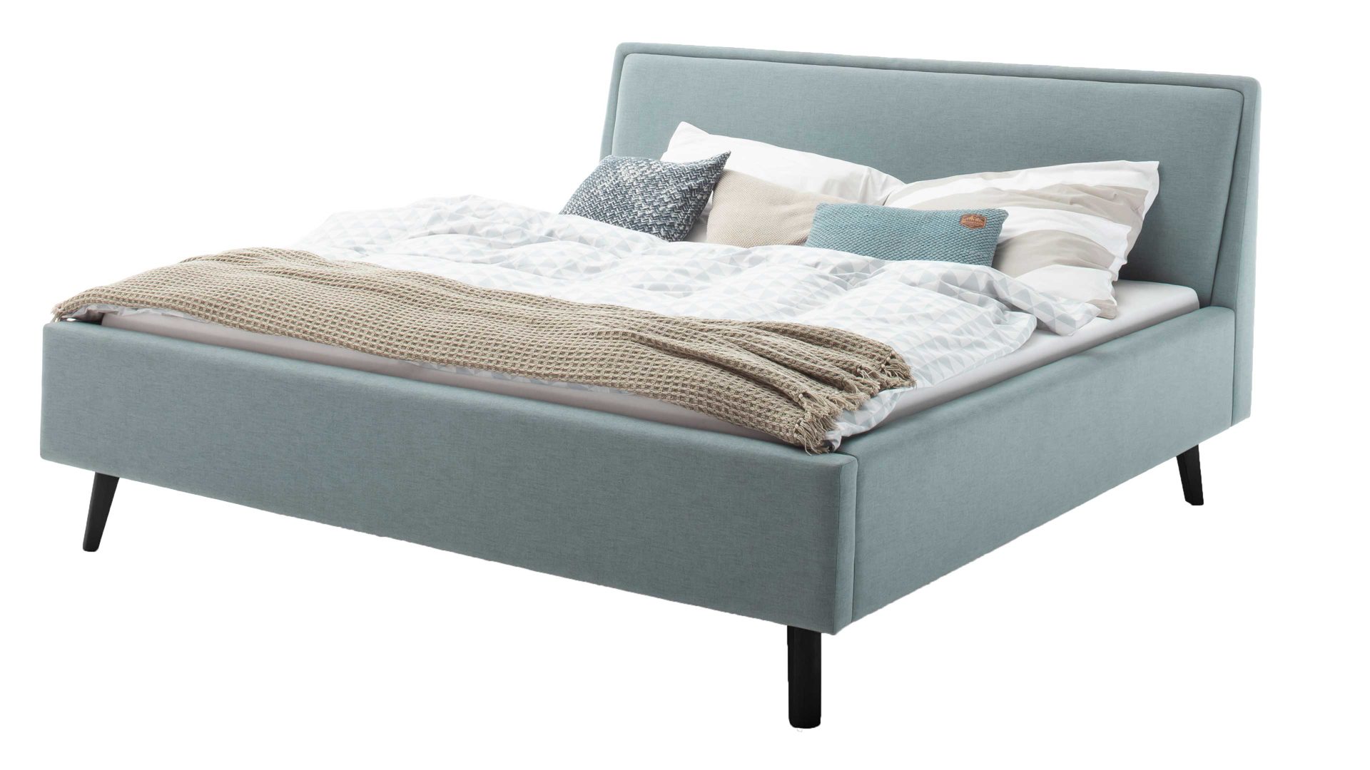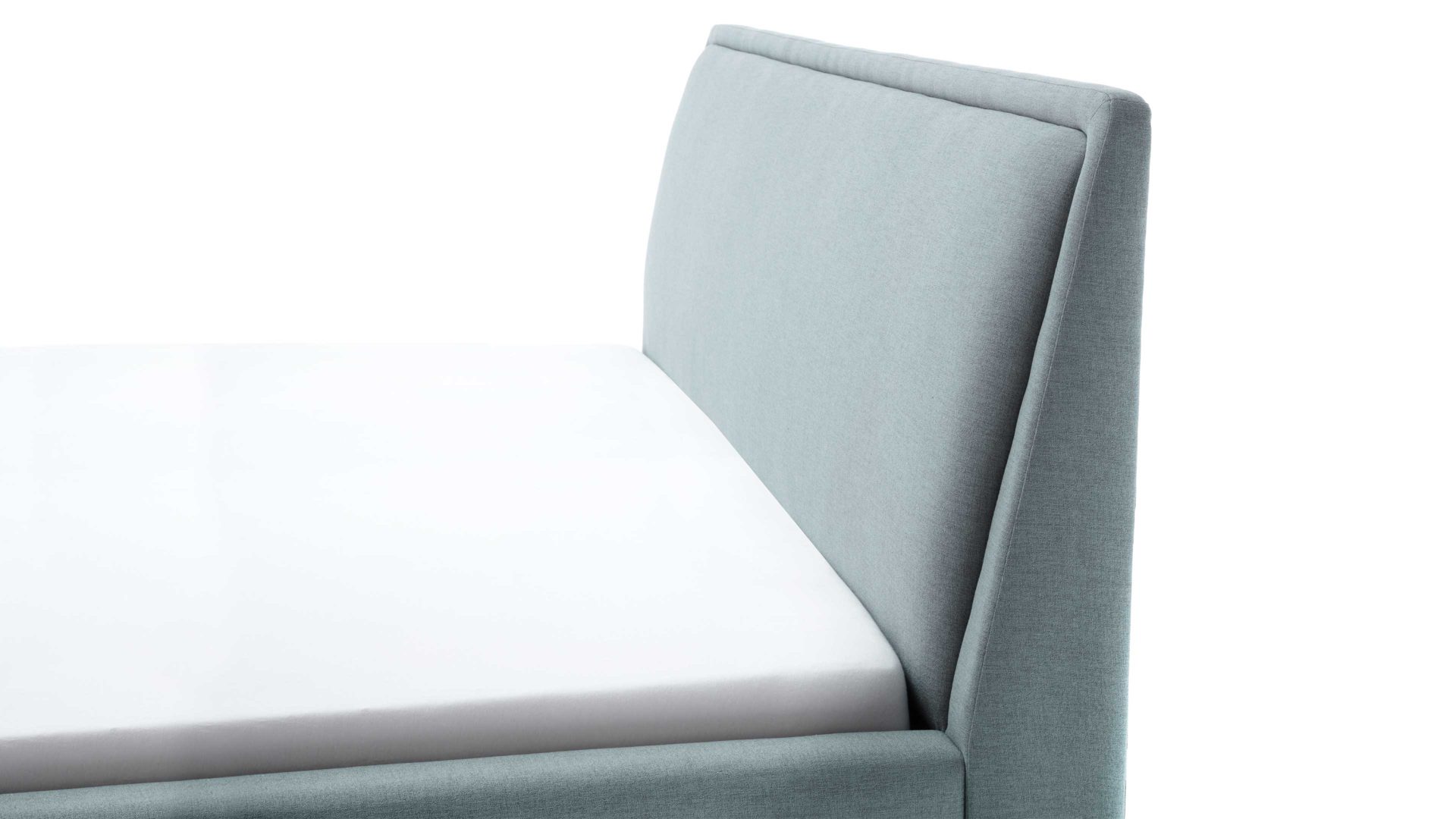 Das Polsterbettgestell Frieda mit Bettkasten verkörpert modernen Komfort. Mit dem eisblauen Stoffbezug und den schwarzen Holzfüßen präsentiert es sich elegant und gemütlich designt. Die Bettseiten sind genauso wie das Polsterkopfteil glatt bezogen. Letzteres ist eine angenehm weiche Rückenlehne, wenn Sie abends im Bett vor dem Schlafen noch entspannt in Ihrem Buch lesen oder fernsehen möchten.