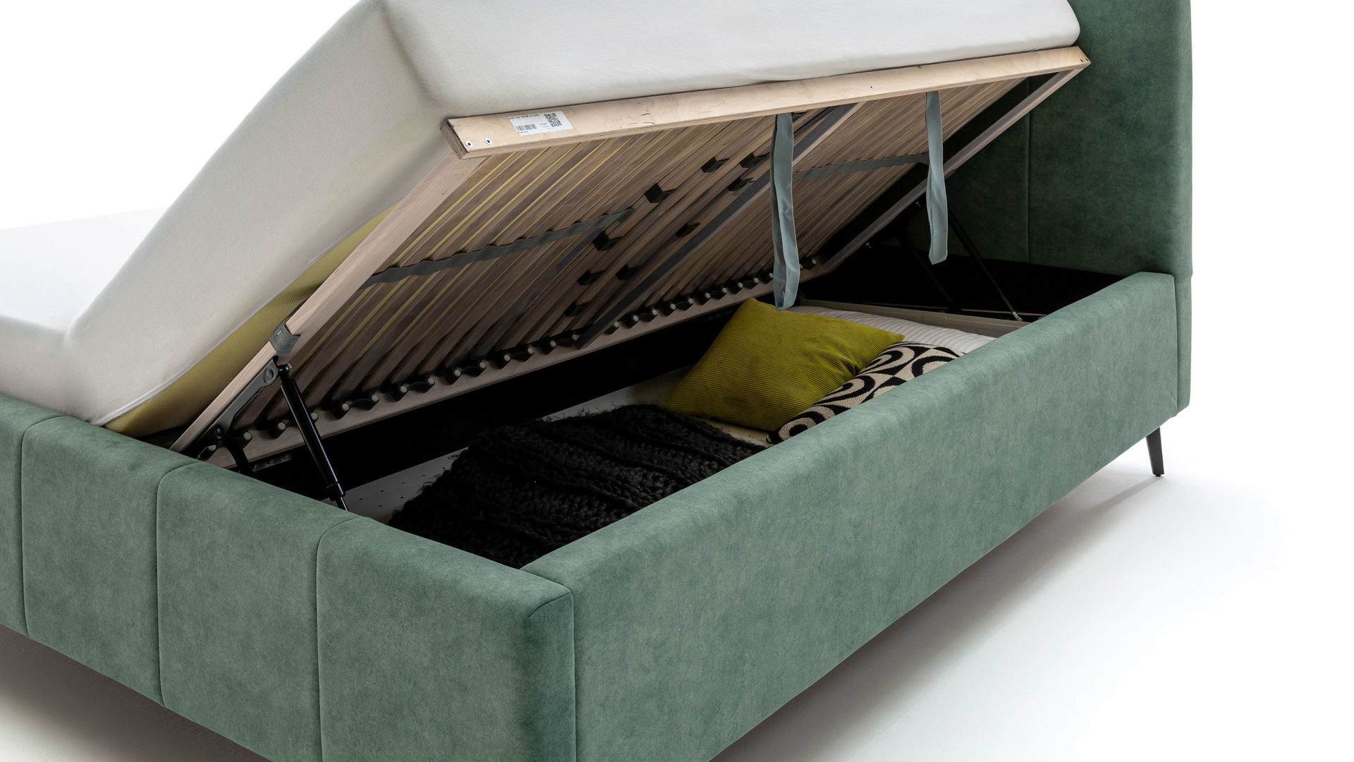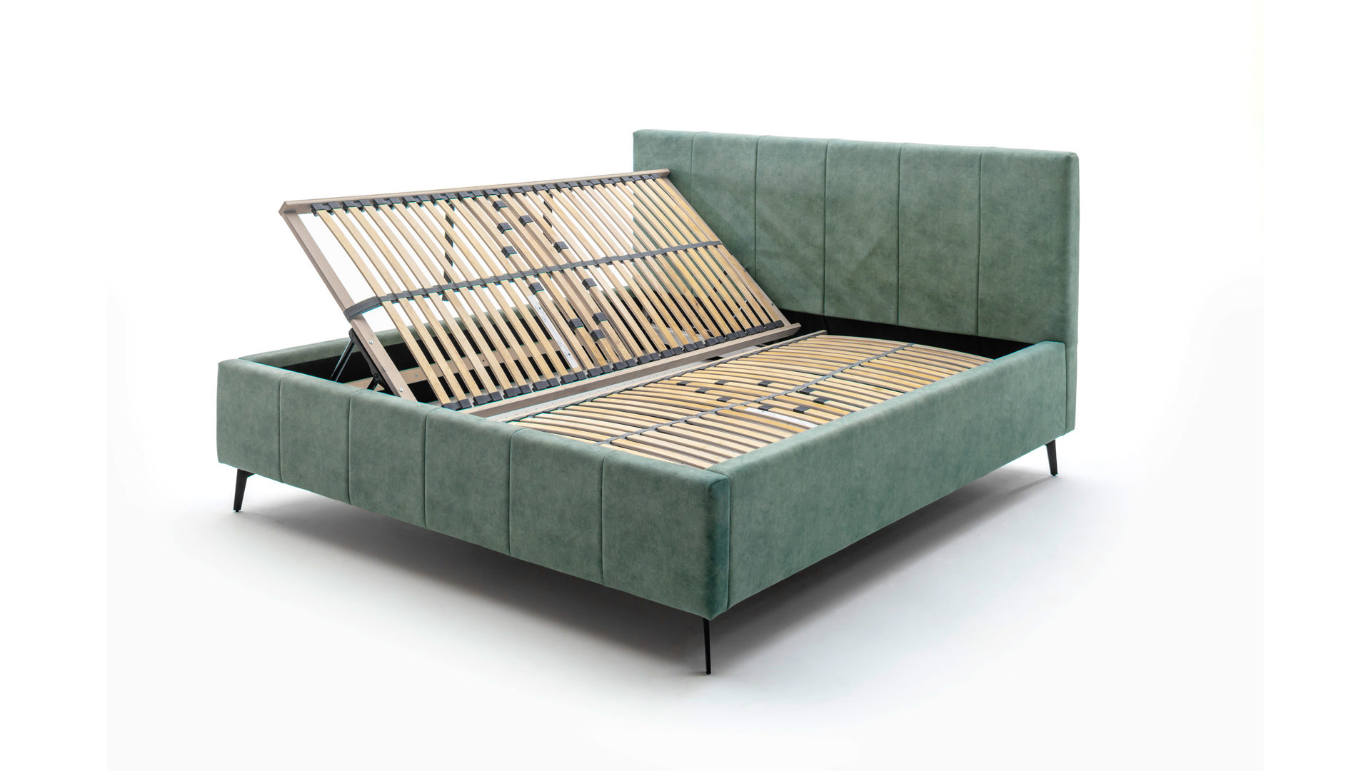 Unter einem seitlich zu öffnenden Federholzrahmen liegt ein geteilter und belüfteter Bettkasten. Der Lattenrost bringt 28 starre Leisten mit. Dank individueller Härtegradverstellung liegen Sie immer genau richtig: etwas weicher oder nach Belieben etwas fester gestützt.