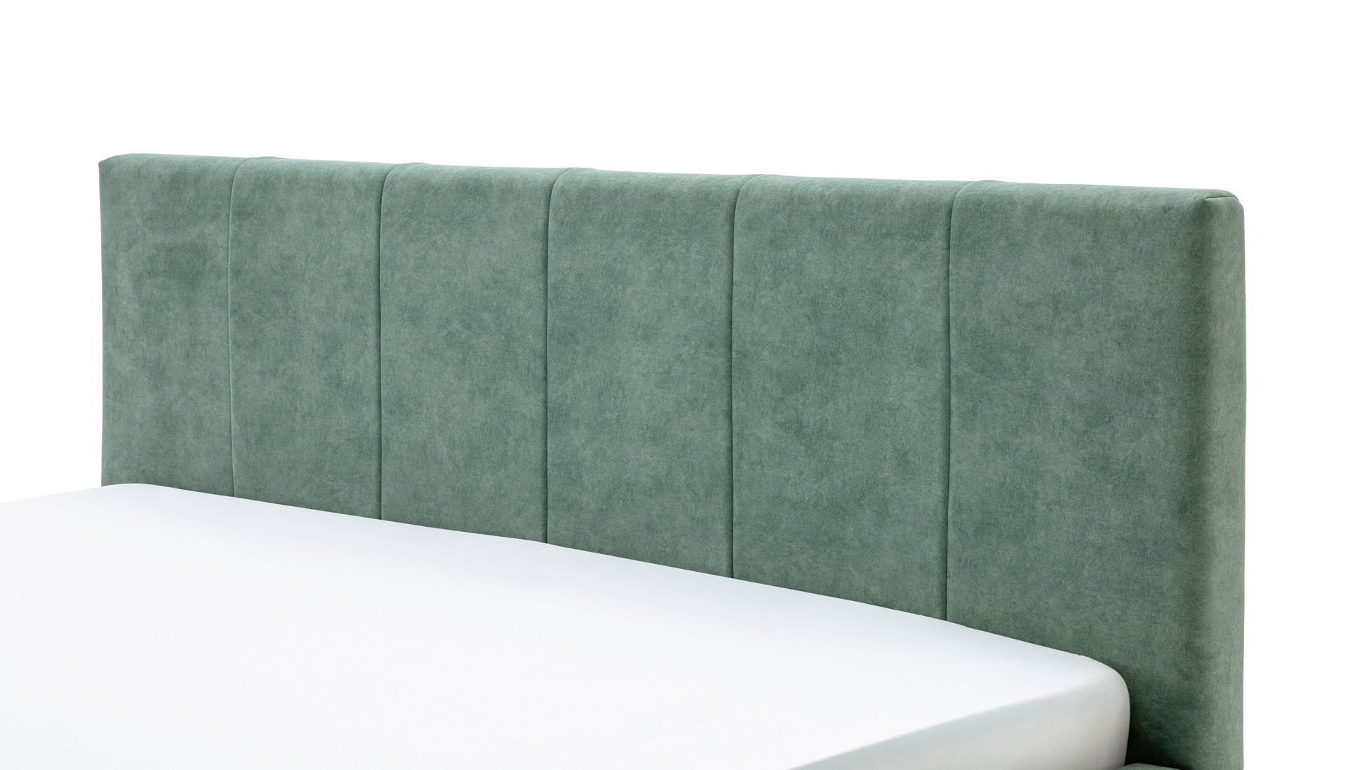 Senkrechte Einzüge zieren das komfortable Kopfteil: Machen Sie es sich daran beim abendlichen Schmökern bequem oder genießen Sie das Sonntagsfrühstück im Bett mit der weichen Rückenstütze.