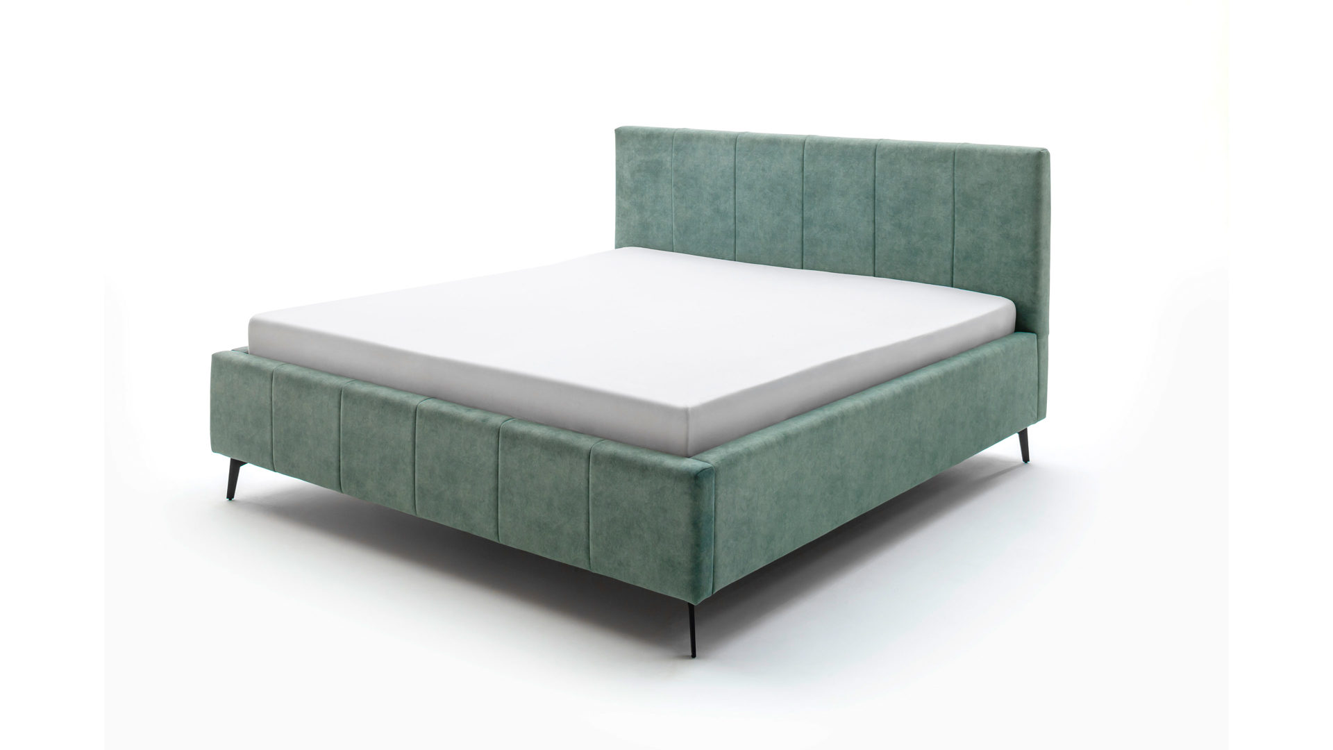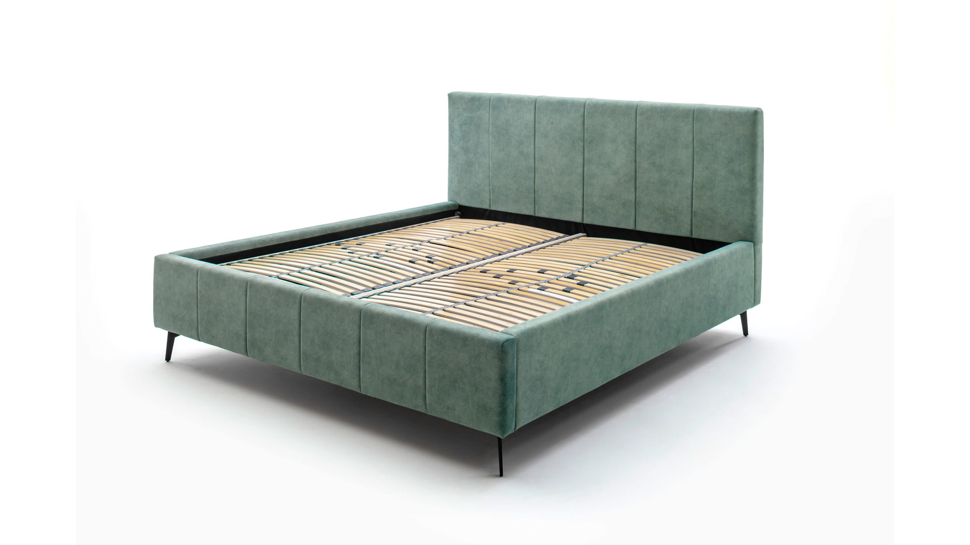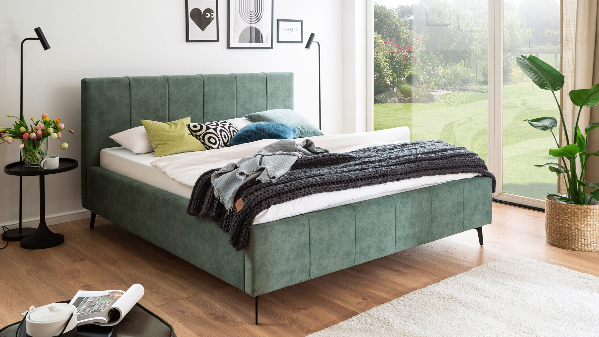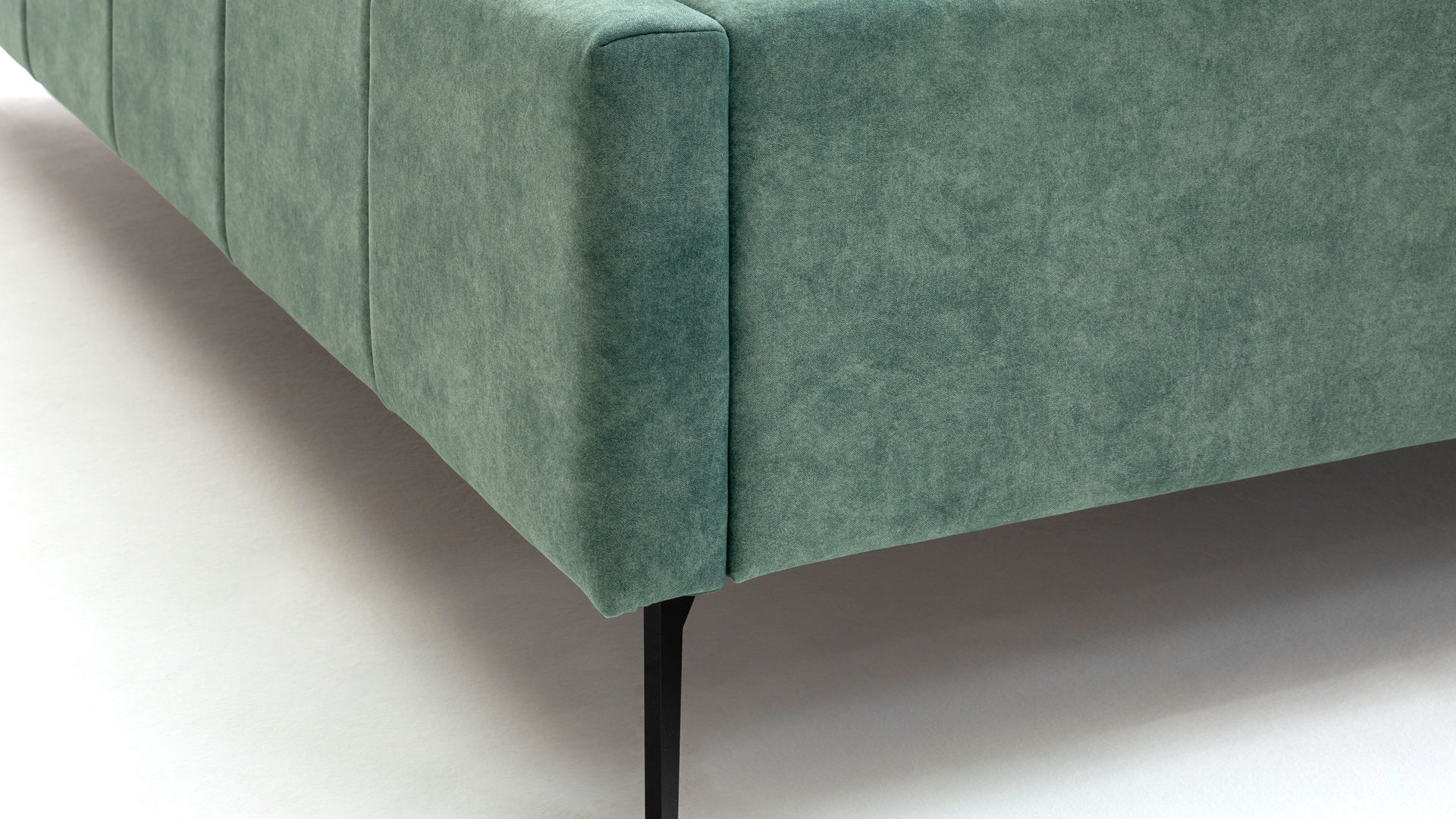 Das Polsterbettgestell Lizzano kommt im zeitlos schicken Design. Von den filigranen, schwarz lackierten Metallfüßen bis hin zum grünen Samtbezug Cloud 33 strahlt das Bett eine dezente Eleganz aus. Damit passt es in nahezu jedes Interieur: Mit einer romantisch angehauchten Schlafzimmereinrichtung harmoniert es ebenso wie mit geradlinigem Minimalismus.