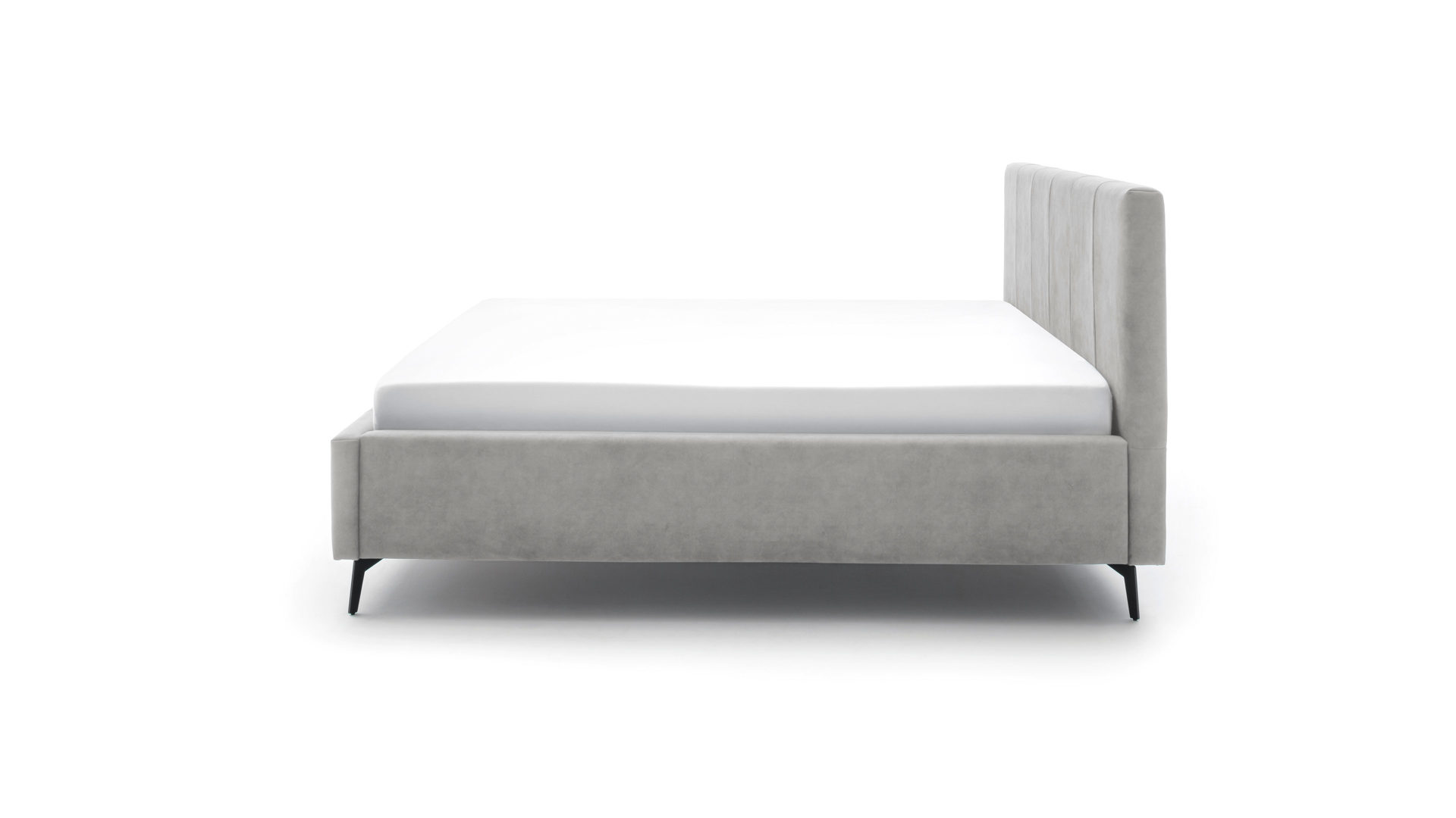 Senkrechte Einzüge zieren das komfortable Kopfteil: Machen Sie es sich daran beim abendlichen Schmökern bequem oder genießen Sie das Sonntagsfrühstück im Bett mit der weichen Rückenstütze.
