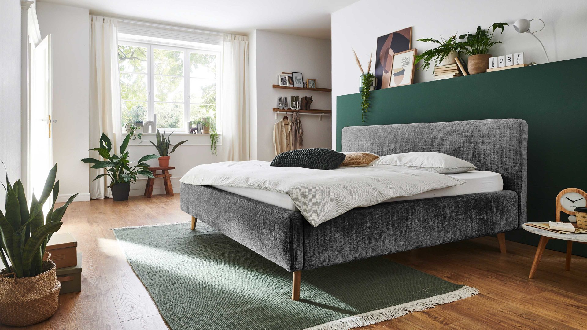 Das Polsterbettgestell Mattis begeistert durch die elegante Optik sowie die hervorragende Material- und Verarbeitungsqualität. Es kombiniert einen anthrazitfarbenen Chenille-Bezug mit eichefarbenen Holzfüßen. Sowohl die Bettseiten als auch das Polsterkopfteil sind glatt bezogen. Letzteres lädt Sie ein, sich anzulehnen, wenn Sie abends im Bett vor dem Schlafen noch fernsehen oder in einem Buch lesen.