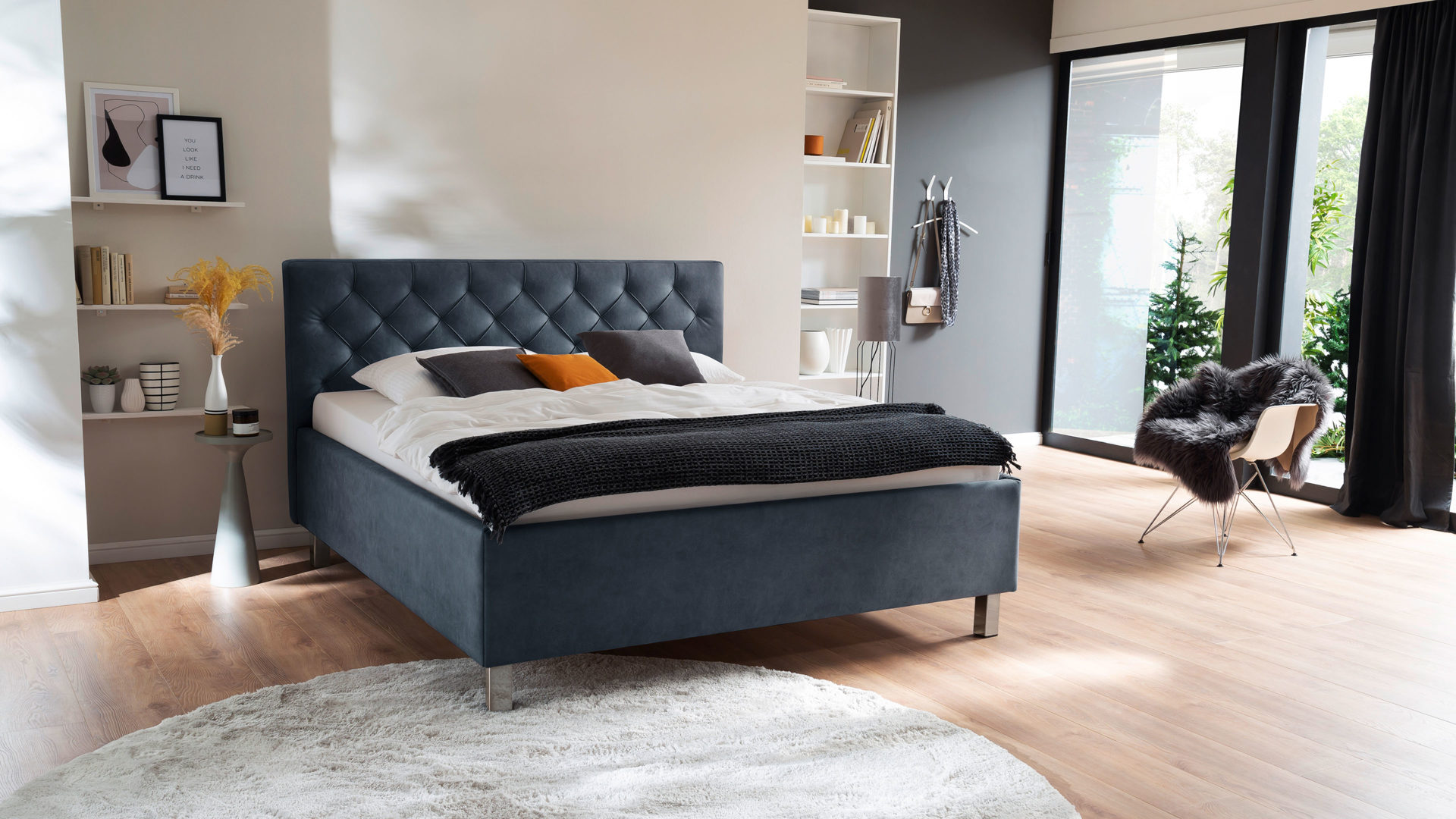 In zwei gängigen Größen sowie fünf modernen Farben ist das Polsterbettgestell San Remo erhältlich.