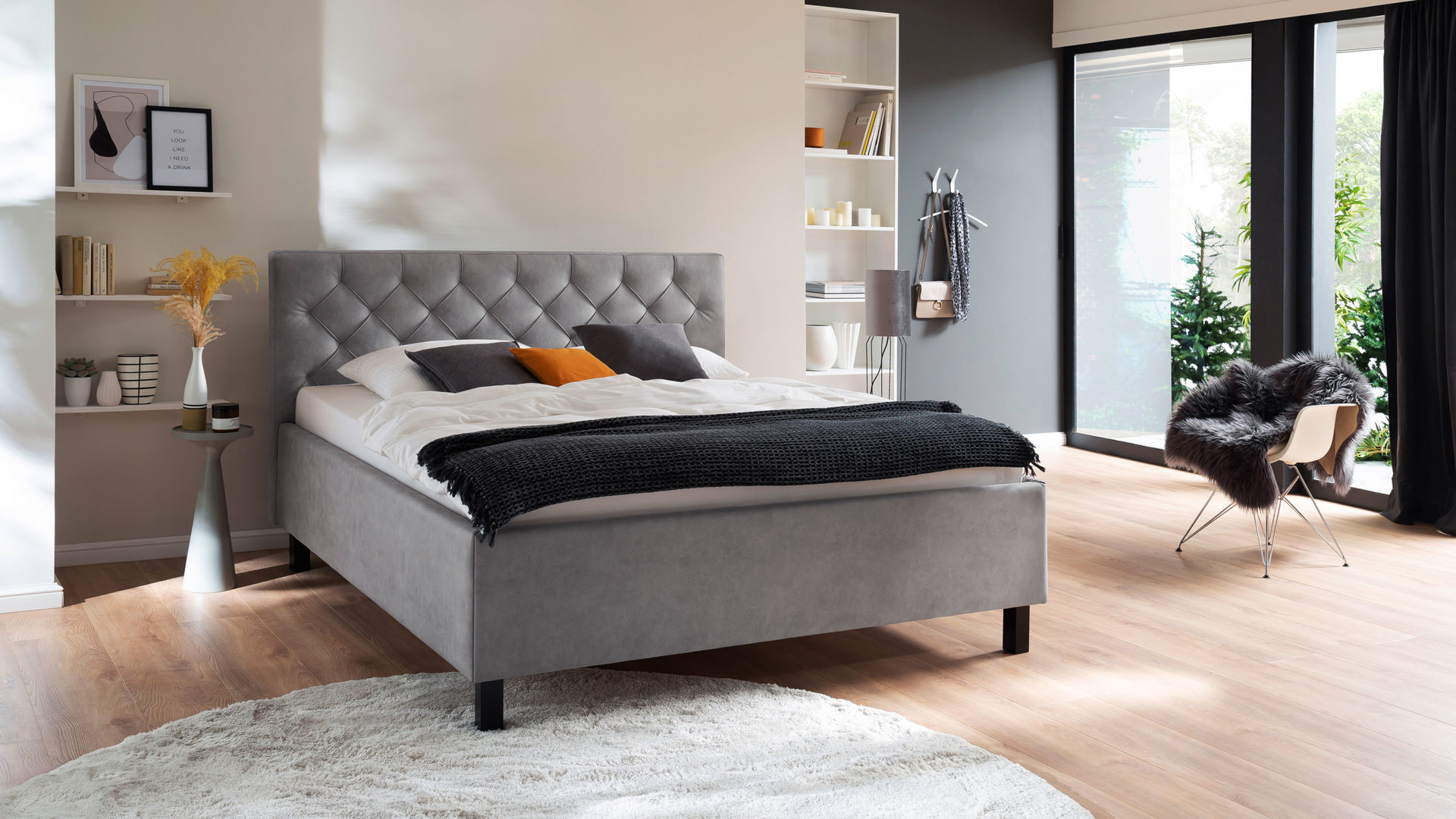 In zwei gängigen Größen sowie fünf modernen Farben ist das Polsterbettgestell San Remo erhältlich.