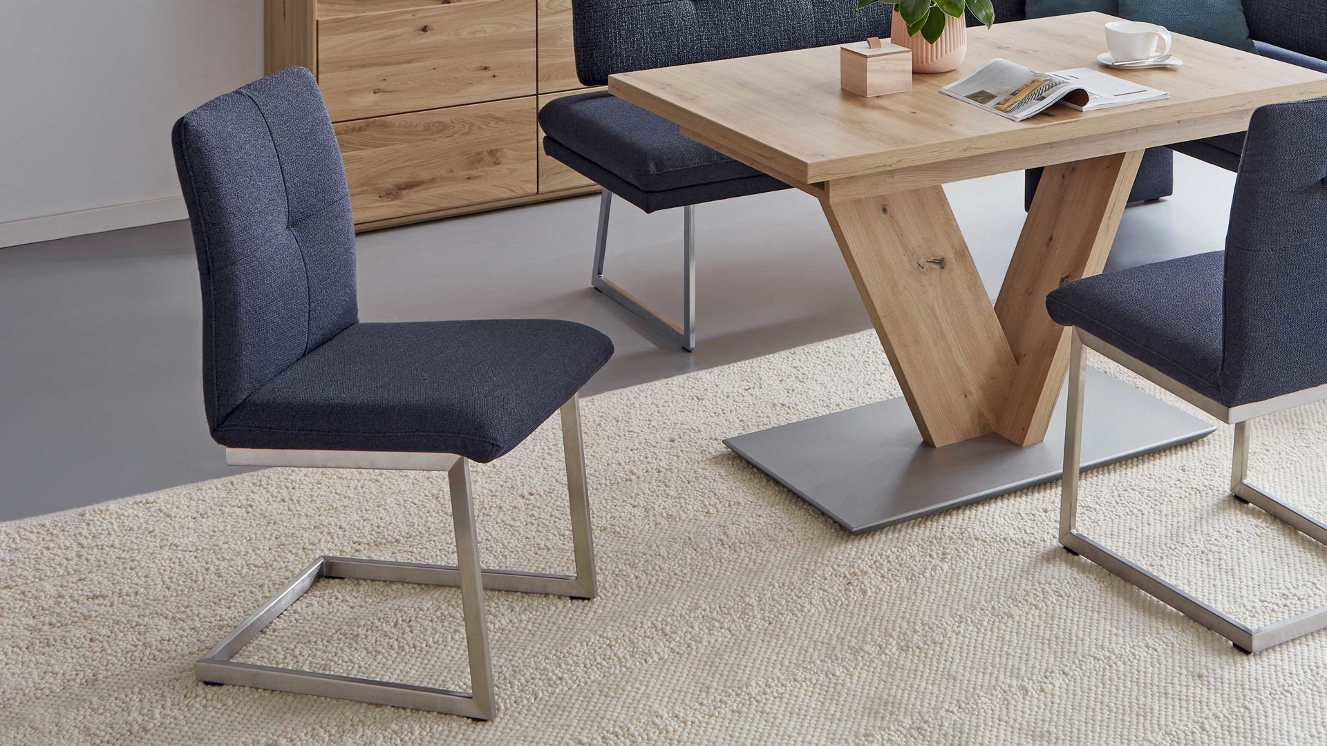 vier Funktions-Esstische in Furnier oder Holz-Nachbildung lieferbar