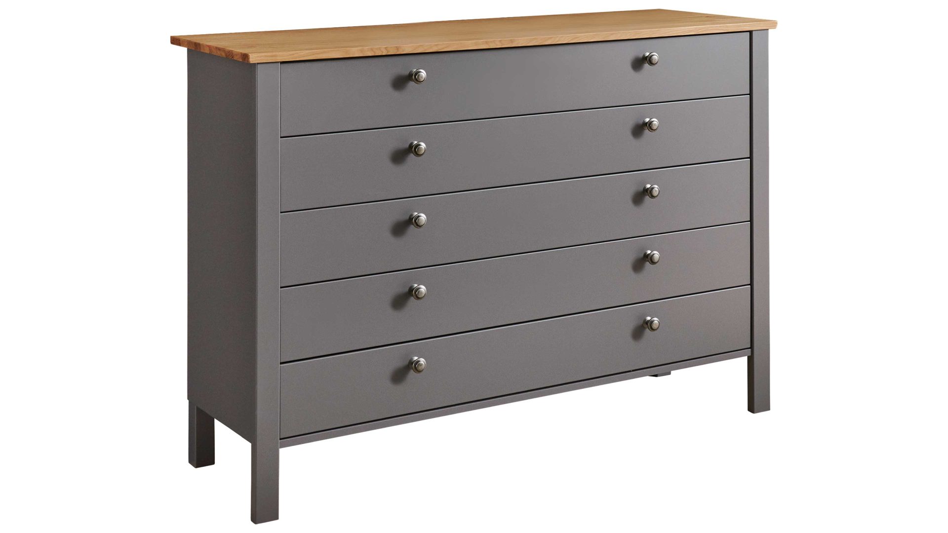 manhattengrauer Lack & Wildeiche - fünf Schubladen, Breite ca. 134 cm