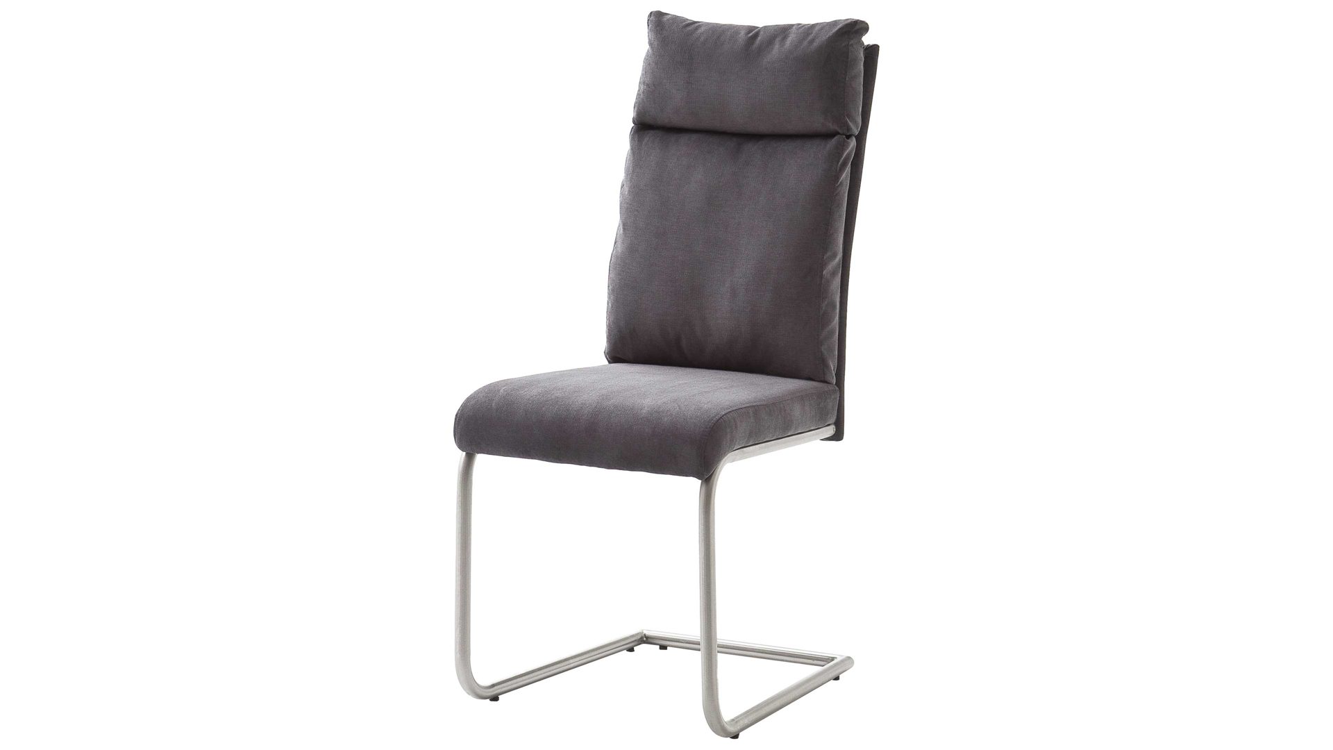 Neben den optischen Charakteristika begeistern auch die funktionalen Eigenschaften des Freischwingers. Dank der extra dick gepolsterten Rückenlehne, die im oberen Bereich eine attraktive Steppnaht aufweist, genießen Sie auf dem weichen Stuhl besonders hohen Sitzkomfort. Darüber hinaus ist der Rücken hinten mit einem praktischen Edelstahlgriff versehen. Dadurch können Sie den Schwingstuhl bei Bedarf einfach von A nach B transportieren beziehungsweise verschieben.