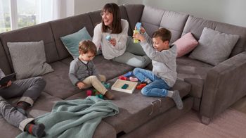 | Maße Einzelartikel: | Schenkelmaße ca. 192 x 351 x 214 cm (TxLxT, von links nach rechts) variable Sitztiefe von ca. 56 bis 76 cm | |