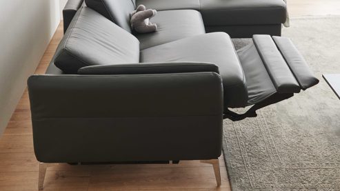 Bei der WallAway-Funktion fährt die Beinauflage auf Sitzhöhe, während sich der Sitz parallel einige Zentimeter nach oben und nach vorne bewegt. So nehmen Sie eine besonders angenehme Relax-Position ein, die sich stufenlos bis zur Liegeposition verstellen lässt. Der entscheidende Vorteil: Der Rücken des Sofas bleibt während der gesamten Bewegung dauerhaft wandfrei – daher der Name WallAway.