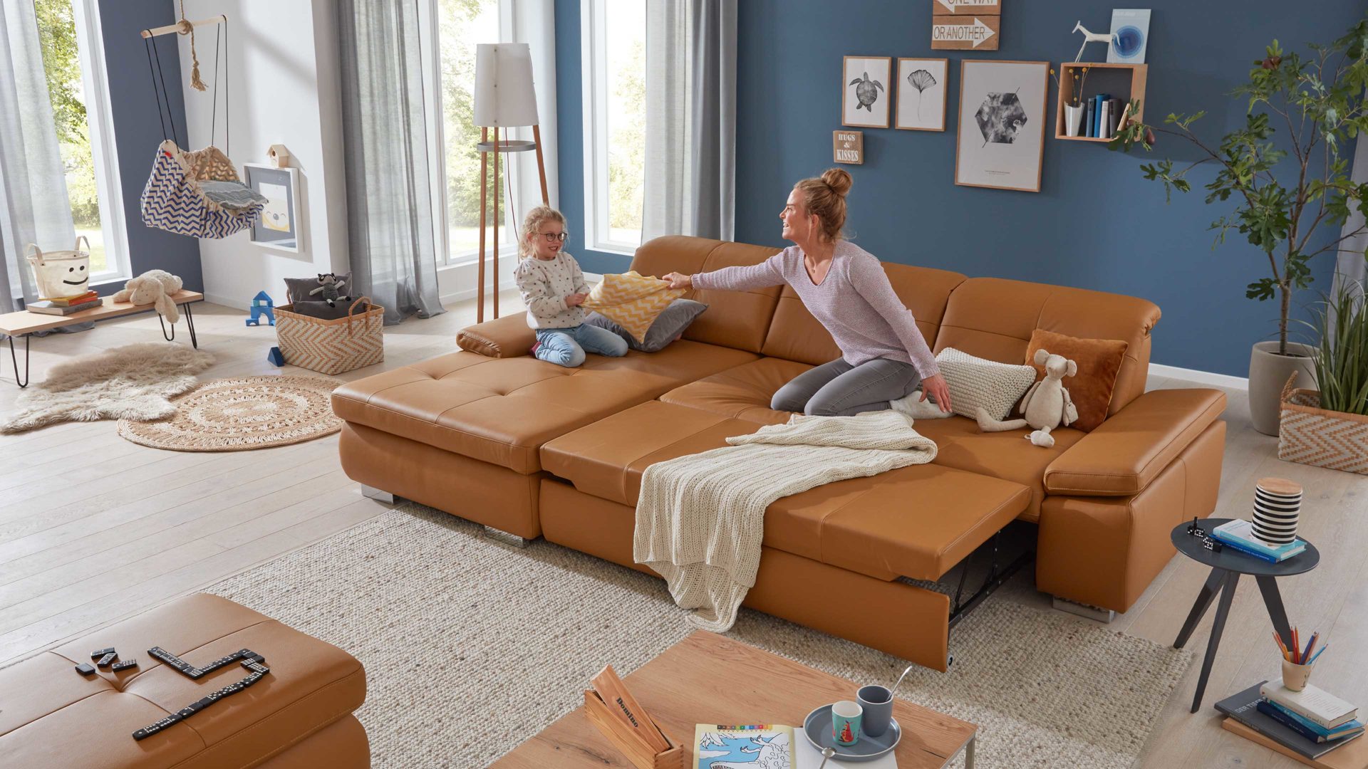 Die Bettfunktion A ist eine Mehrpreis-Ergänzung für die 2,5-Sitzer und 3-Sitzer mit einer Armlehne aus dem Modulmaster-Programm MM-PN1044. Sie ermöglicht es Ihnen, das jeweilige Sofa über den verchromten Metallgriff nach vorne auszuziehen und die Sitzfläche um ca. 205 x 145 cm (LxB) zu erweitern. Die Liegefläche der Querschläfer-Bettfunktion ist mit Nesselstoff bezogen, gegen Mehrpreis allerdings auch im Originalstoff lieferbar.