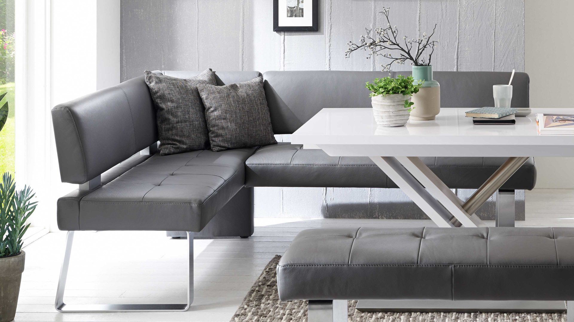 In Ihrer Küche machen Sie es sich auf dieser wunderbaren Modulmaster Eckbank Game 1 bequem. Stilvoll und elegant präsentiert sich die Dinnerbank mit einem dunkelbraunen Microfaserbezug, der sich mit den Kontrastnähten harmonisch in Ihre Kücheneinrichtung einfügt. Versammeln Sie Familie und Freunde um Ihren Küchentisch auf der Küchenbank, die Sie über Eck stellen und so auch ungenutzten Raum optimal ausfüllen.