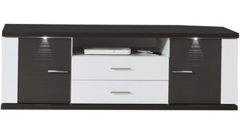Tolles Sideboard für Ihr Zuhause: Mit arcticweißen Hochglanzfronten und graphitfarben geschroppten Absetzungen besticht diese raffinierte Stauraumlösung als Wohnmöbel. Der Korpus verfügt über arcticweiße Melaminoberflächen, die nicht nur stoß- und kratzfest, sondern auch lichtbeständig sind. Die Kombikommode, hinter deren zwei Türen sich jeweils ein Holzboden verbergen, ist bereits mit Front-LED-Beleuchtung ausgestattet. In fünf Schubladen mit Soft-Close-Dämpfung findet sich weiterer Stauraum. In diesem Aufbewahrungsmöbel bringen Sie Gläser, Vasen, Bücher und Wohnaccessoires ordentlich und staubfrei unter.