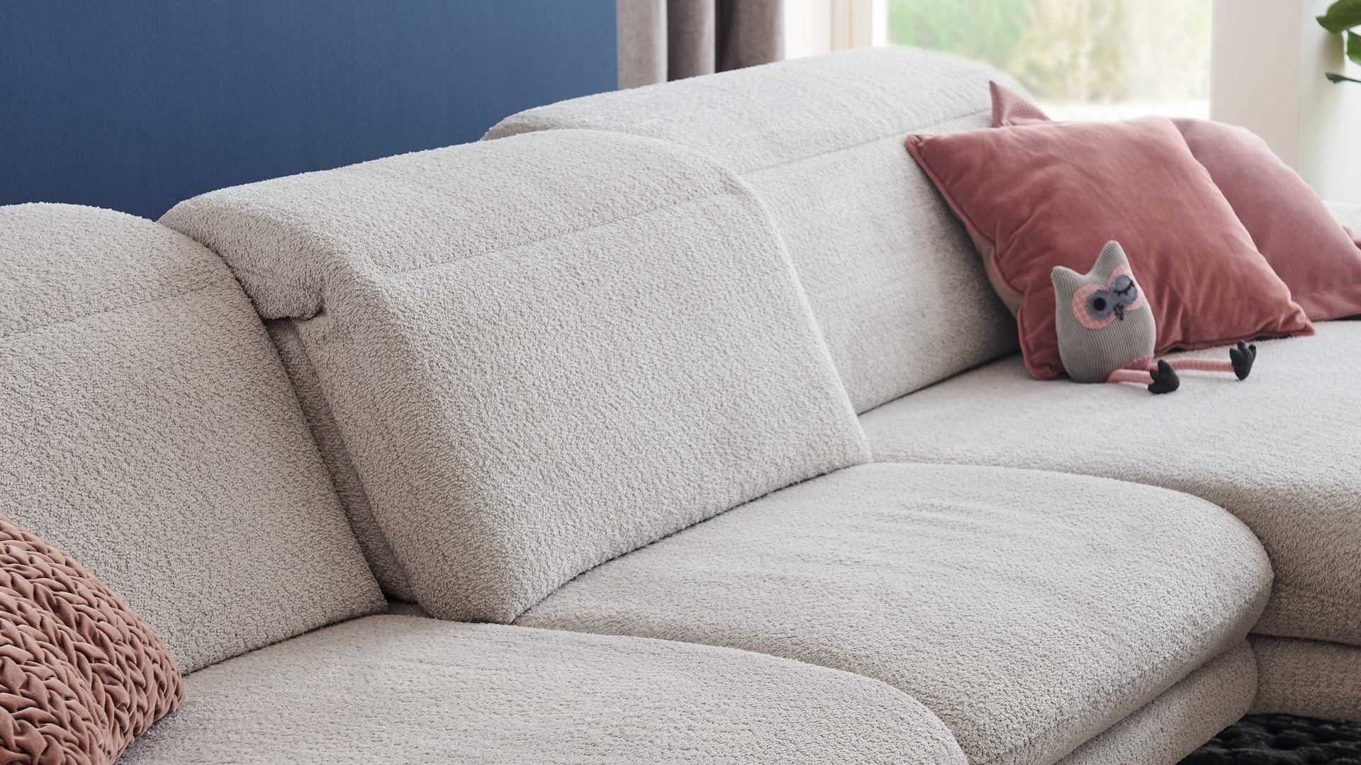 Des Weiteren können Sie einige Details an Ihre Wünsche und Bedürfnisse anpassen. Die Polstermöbel sind preisgleich mit einer soften Kaltschaum- oder etwas festeren Federkernpolsterung sowie mit mattschwarzen oder glänzenden Metallfüßen erhältlich. Darüber hinaus profitieren Sie von der umfangreichen Bezugauswahl. Es sind verschiedene Zusammenstellungen planbar, die sich mit vielen Funktionen ergänzen lassen.