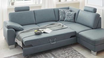 • Die Abbildung zeigt ein Wohnbeispiel, welches auch Dekoration sowie separat erhältliches Zubehör enthält. Im Lieferumfang enthalten ist ein Ecksofa ohne Extras.