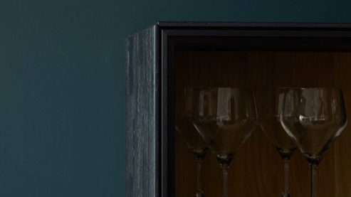 Im Inneren sorgen drei Klarglas-Einlegeböden für eine strukturierte Präsentationsfläche. Hier finden Gläser, Deko oder kleine Sammlerstücke ihren perfekten Platz – offen, leicht und modern in Szene gesetzt. Optional kannst du die Hängevitrine mit einer eleganten Griffleistenbeleuchtung ausstatten, die feine Lichtakzente setzt und die Linienführung zusätzlich betont. So entsteht am Abend eine besonders stimmungsvolle Atmosphäre.