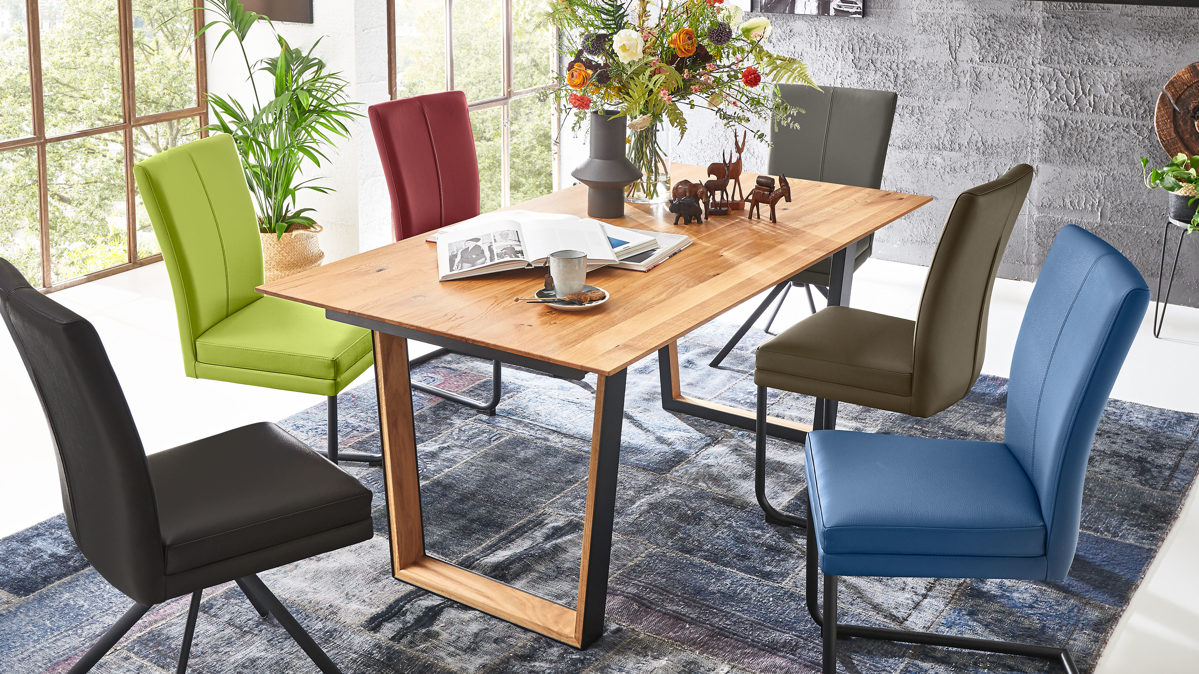 nach Wunsch kombinierbare Stühle - aus Mikrofaser- oder Lederbezügen, Metall- oder Holzgestellen und verschiedenen Sitzschalen mit und ohne Funktion wählen