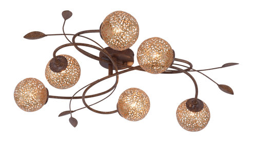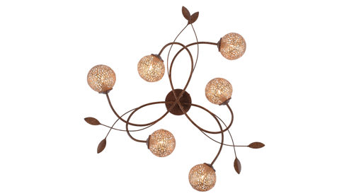 Die Paul Neuhaus LED-Deckenleuchte Greta leuchtet Ihren Wohnbereich wunderbar aus und fungiert zugleich als ansprechendes Dekoelement. Gefertigt aus rostfarbenem Metall in Kombination mit goldfarbenen Lampenschirmen beeindruckt die raffinierte Leuchte gleich auf den ersten Blick. Statten Sie die Deckenlampe einfach mit sechs G9-Leuchtmitteln mit je 40 Watt aus, die sich für die Energieeffizienzklasse A bis G eignen, und nehmen Sie das Lampenmodell direkt in Betrieb.