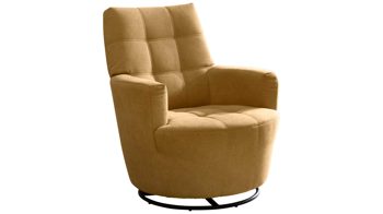 Er verbindet einen senffarbenen Stoffbezug mit einem mattschwarzen Metall-Sternfuß sowie einer mattschwarzen Metall-Armlehne mit bequemer Polsterauflage. Dank der hochwertigen PUR-Schaumpolsterung genießen Sie auf diesem TV-Sessel hervorragenden Sitzkomfort und können so richtig relaxen.