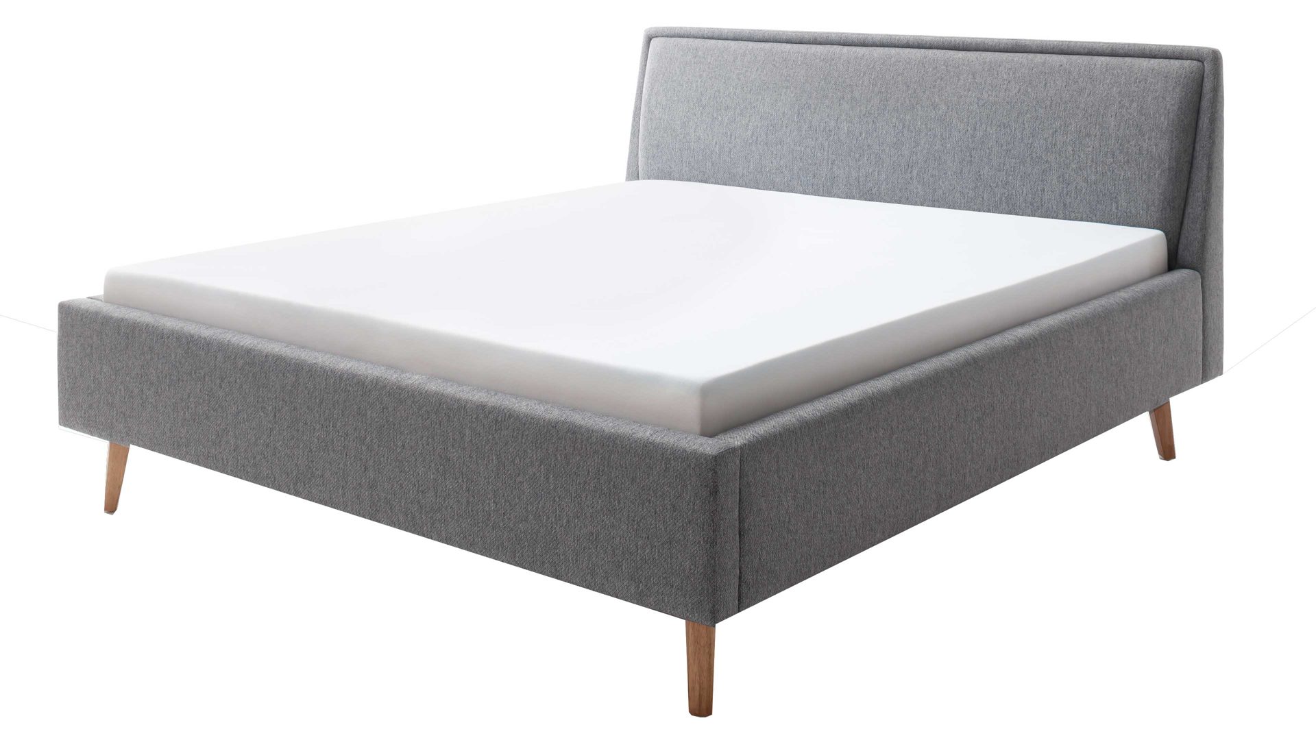 Das Polsterbettgestell Frieda mit Bettkasten verkörpert modernen Komfort. Mit dem grauen Stoffbezug und den eichefarbenen Holzfüßen präsentiert es sich elegant und gemütlich designt. Die Bettseiten sind genauso wie das Polsterkopfteil glatt bezogen. Letzteres ist eine angenehm weiche Rückenlehne, wenn Sie abends im Bett vor dem Schlafen noch entspannt in Ihrem Buch lesen oder fernsehen möchten.