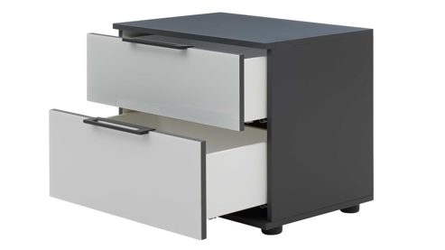 Mit kompakten Maßen von ca. 46 x 49 x 46 cm (BxHxT) passt die Nachtkommode auch in kleinere Räume. Die Schubkästen mit Softeinzug lassen sich leise und angenehm bedienen und bieten dir Stauraum für alles, was du nachts griffbereit haben möchtest – von der Abendlektüre bis zu persönlichen Kleinigkeiten.