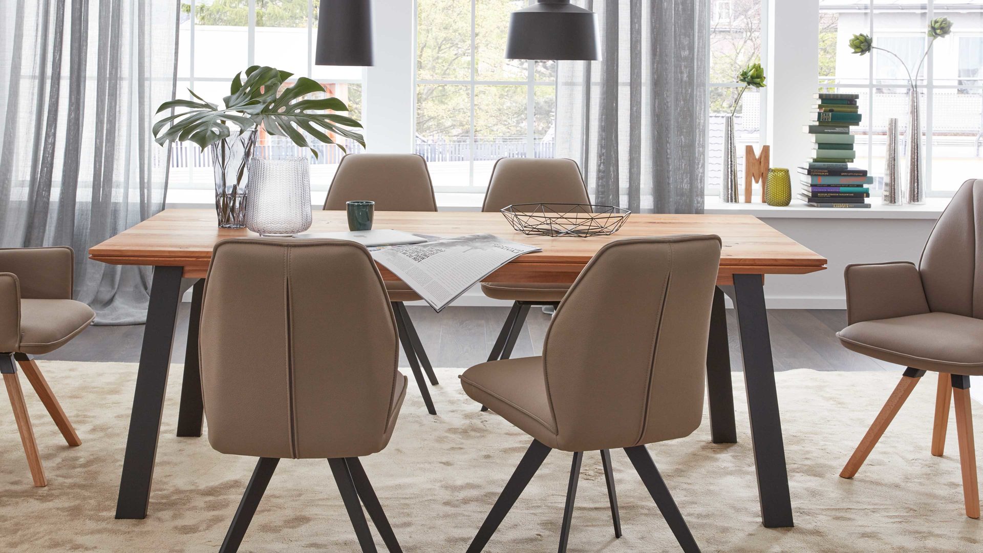 Der Ausziehtisch aus der Interliving Esszimmer Serie 5102 kombiniert natürliche Ausstrahlung mit moderner Funktionalität – ideal für deinen Wohn- und Essbereich. Die Tischplatte aus Charakter-Kernbuche bringt warme, lebendige Maserungen in den Raum und sorgt für eine einladende, hochwertige Atmosphäre.