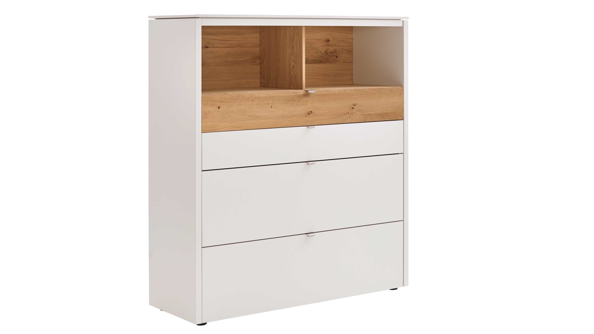 Optiwhite, Asteiche & Riss-Eiche – zwei Türen, eine Schublade