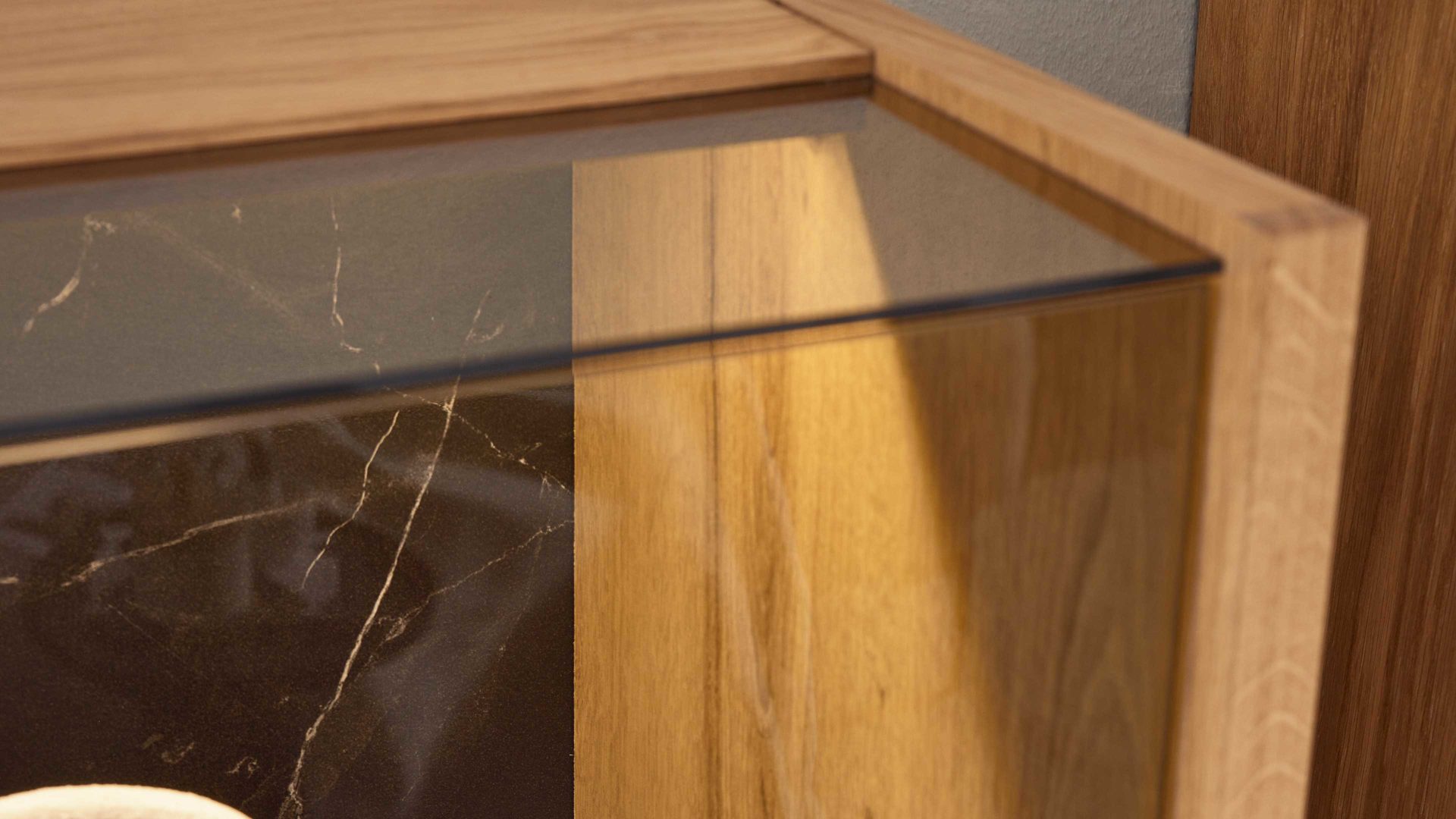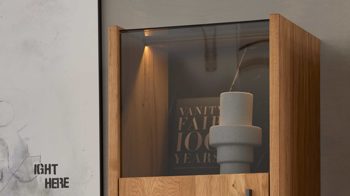 Streifenbeleuchtung für die Highboard-Vitrine 15 aus der Interliving Wohnzimmer Serie 2027 – gezielte Rückwandbeleuchtung für stilvolle Akzente