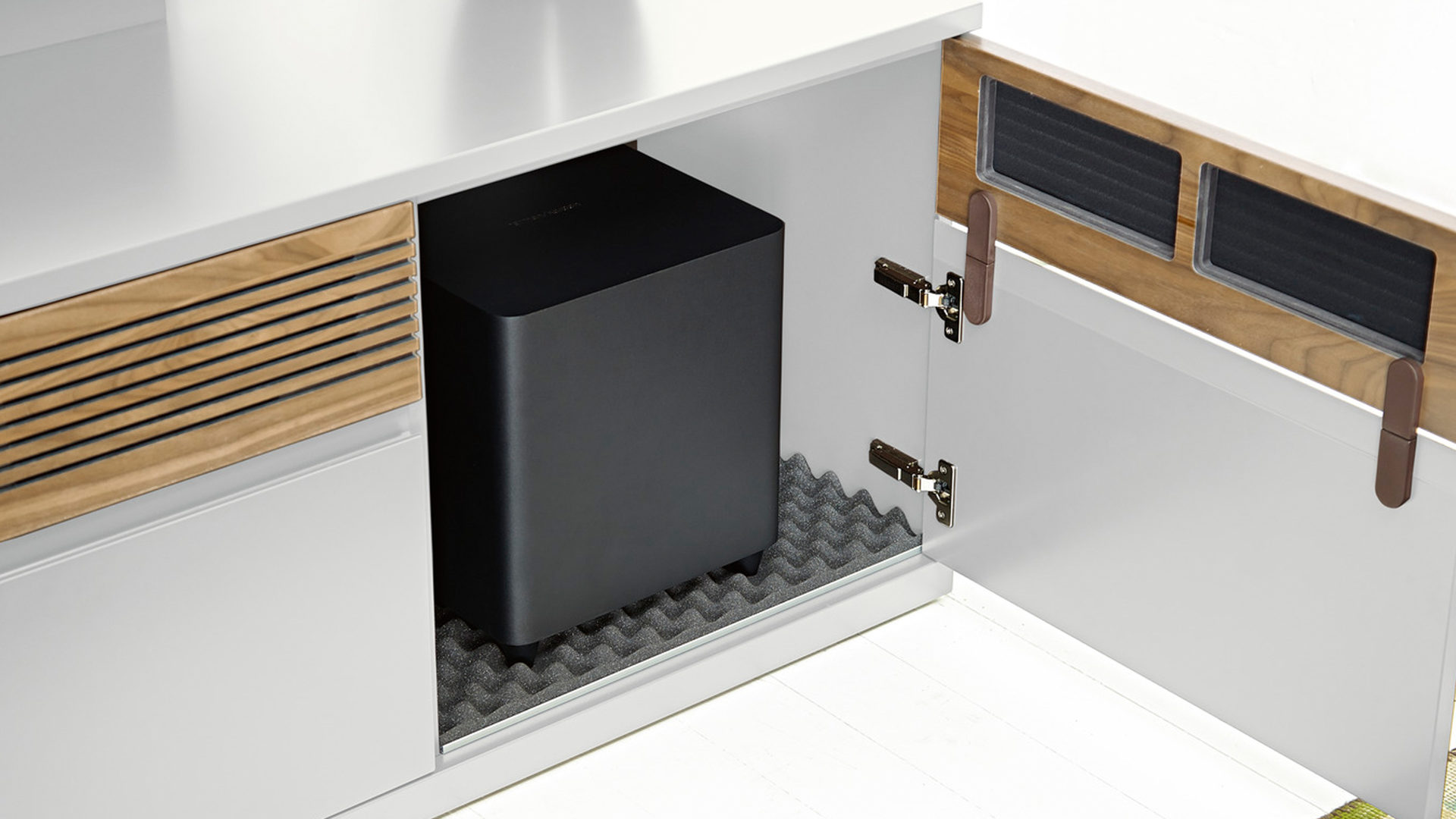 Die stilvoll gestaltete und erstklassig verarbeitete Wohnkombination besteht aus zwei Vitrinenschränken, einem Sideboard, zwei CD-Regalen und einem Wandregal. Einer der beiden Vitrinenschränke weist eine Glas- und eine Holztür sowie einen Holz- und drei Glasböden auf. Seine Maße belaufen sich auf ca. 60 x 219 x 40 cm (BxHxT). Die andere Vitrine kommt mit einer Glastür daher, hinter der drei Glasböden warten. Zudem bietet dieser Schrank drei Auszüge. Er misst ebenfalls ca. 60 x 219 x 40 cm (BxHxT). Das edle Sideboard mit innovativem Furn-Sound-System (Akustikblende und akustikwirksamer Innenausstattung) offenbart zwei Türen, eine Klappe und ein Soundbarfach mit Push to open. Es ist ca. 210 x 61 x 49 cm (BxHxT) groß. In den beiden CD-Regalen schaffen jeweils drei Fächer Platz für ca. 42 CDs. Jedes Regal misst ca. 60 x 23 x 17 cm (BxHxT). Auf dem Glasboden des ca. 210 x 23 x 22 cm (BxHxT) großen Wandregals bringen Sie schöne Accessoires perfekt zur Geltung. Insgesamt betragen die Maße der ansprechenden Wohnwand ca. 330 x 219 x 50 cm (BxHxT).