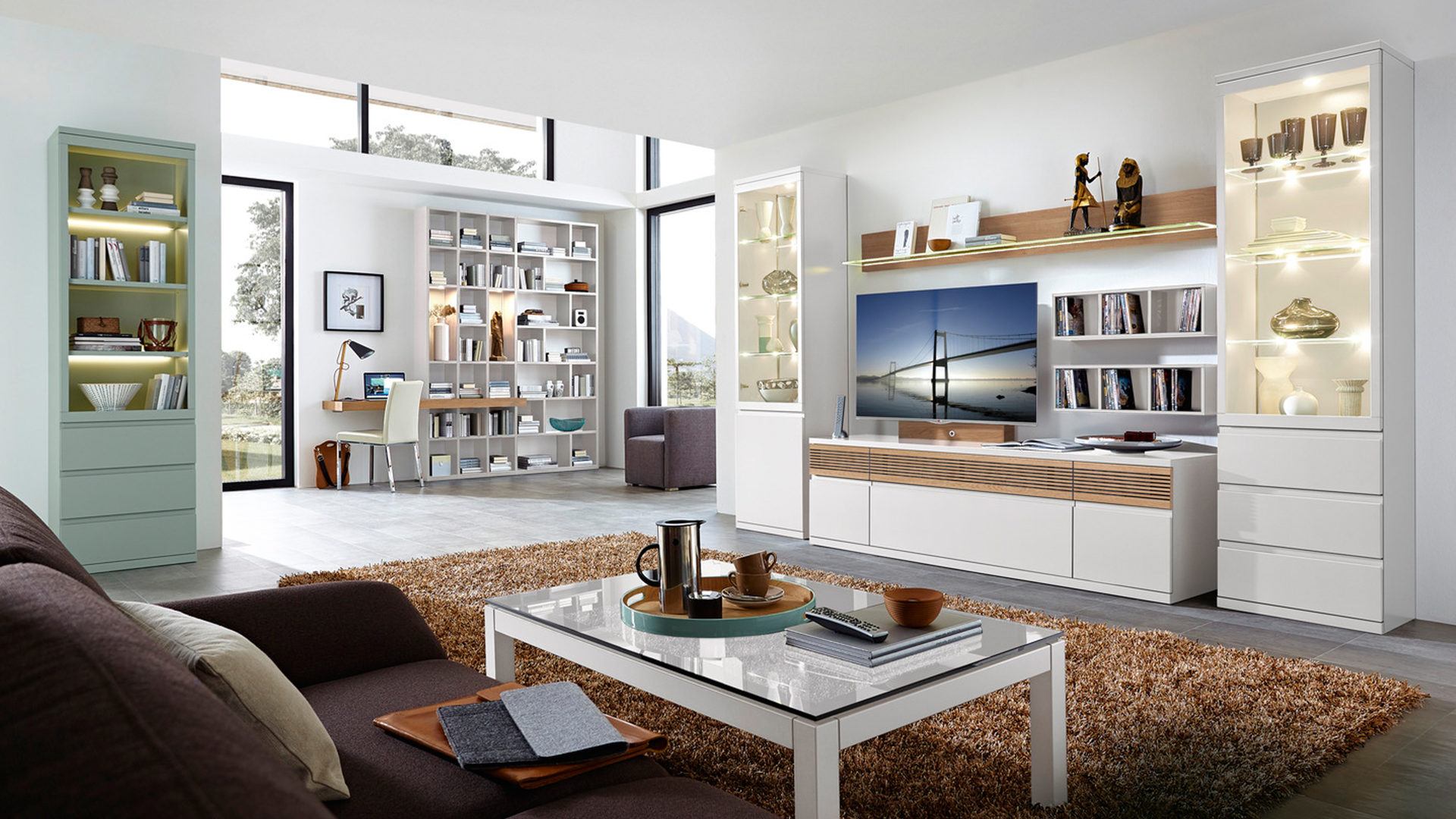 Funktionale Highlights sind der gedämpfte Frontenanschlag und der Softeinzug aller Schubladen, der ein angenehm leises Schließen ermöglicht. Gegen Mehrpreis erhalten Sie einige Wohnmöbel der Kombination mit energieeffizienter Beleuchtung. Durch den Typenplan mit einer großen Farb- und Typenauswahl können Sie das genaue Design der Wohnwand individuell an Ihren Geschmack anpassen. Auch weitere Artikel der Serie stehen Ihnen zur Verfügung - für ein rundum harmonisch eingerichtetes Wohnzimmer.