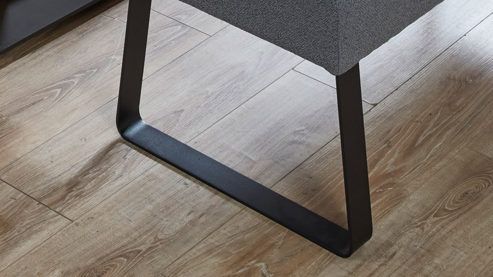 steingrauer Bouclébezug, kombiniert mit mattschwarzem Metall