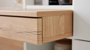 Kombiniere den Schreibtisch mit weiteren Elementen der Serie – etwa Sideboards, Regalen oder Vitrinen – und gestalte so ein stilvolles Homeoffice, das Funktionalität und Wohnlichkeit perfekt verbindet. So entsteht ein Arbeitsbereich, der dich jeden Tag motiviert und inspiriert.
