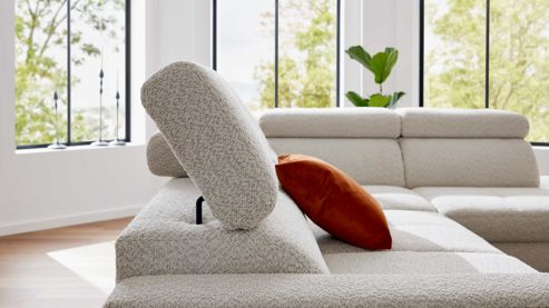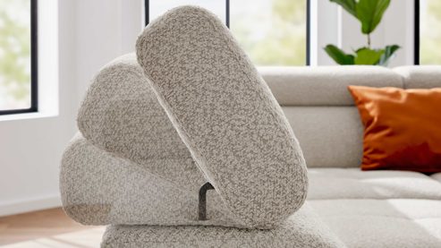 Die Eckkombination besteht aus einem Zweisitzer-Sofa mit Armlehne links sowie einem Eckelement mit drei Kopfteilpolstern und offenem Abschluss rechts. Die integrierte Kopfteilverstellung ermöglicht dir eine individuelle Anpassung der Rückenlehnen – perfekt zum entspannten Zurücklehnen, Lesen oder Fernsehen. So passt sich das Sofa flexibel deinen Sitz- und Liegegewohnheiten an.