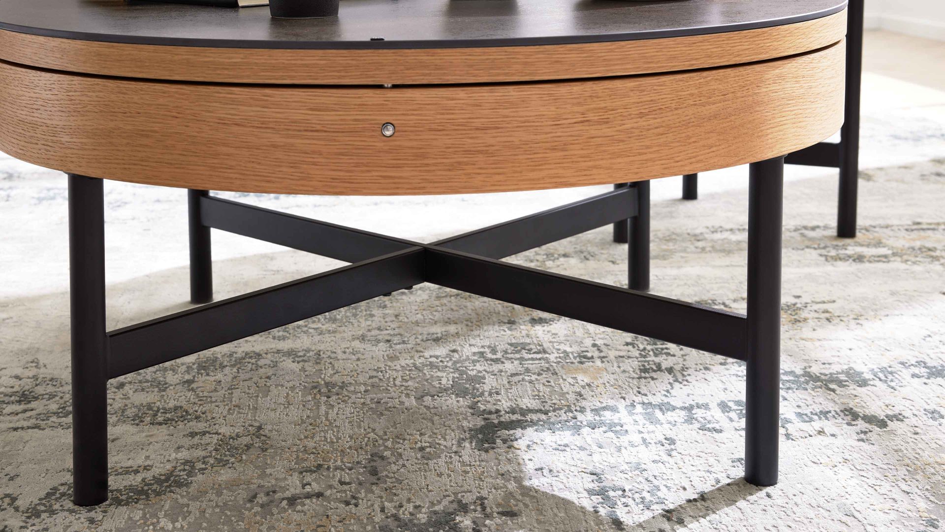 Hinter der eleganten Optik steckt clevere Funktionalität: Die 3 mm starke Keramikplatte ist fest auf Glas verklebt, wodurch sie robust, pflegeleicht und hitzebeständig ist – ideal für den täglichen Gebrauch. Unter der schwenkbaren Tischplatte verbirgt sich praktischer Stauraum für Zeitschriften, Fernbedienungen oder andere kleine Dinge, die du gerne griffbereit, aber ordentlich verstaut hast. Mit einem Durchmesser von ca. 85 cm und einer Höhe von ca. 40 cm bietet der Tisch die perfekte Balance zwischen Großzügigkeit und Kompaktheit – ideal für Sofalandschaften und moderne Wohnräume gleichermaßen.