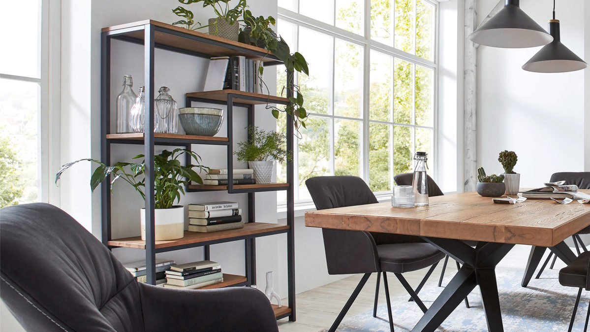 Das erstklassig verarbeitete Standregal aus dem WOODS & TRENDS Programm Vintage-Dining ist im angesagten Industrie-Look designt und setzt damit einen attraktiven Akzent in jedem Wohnzimmer.