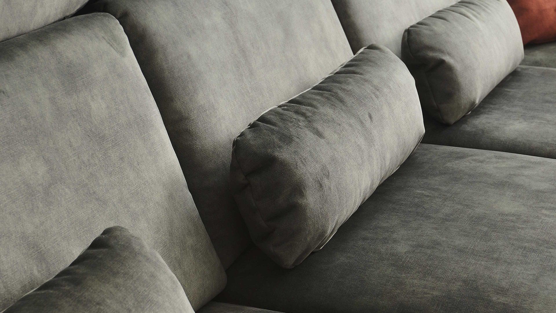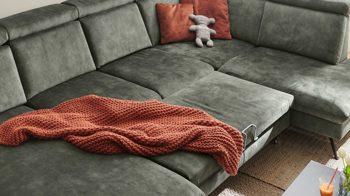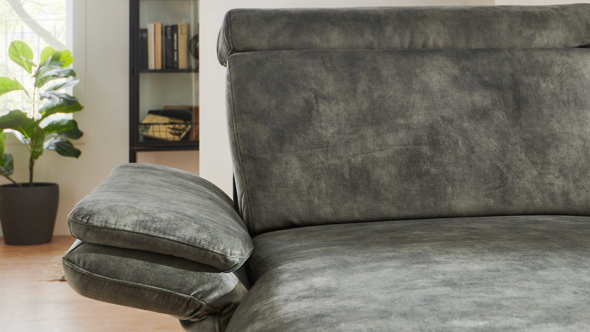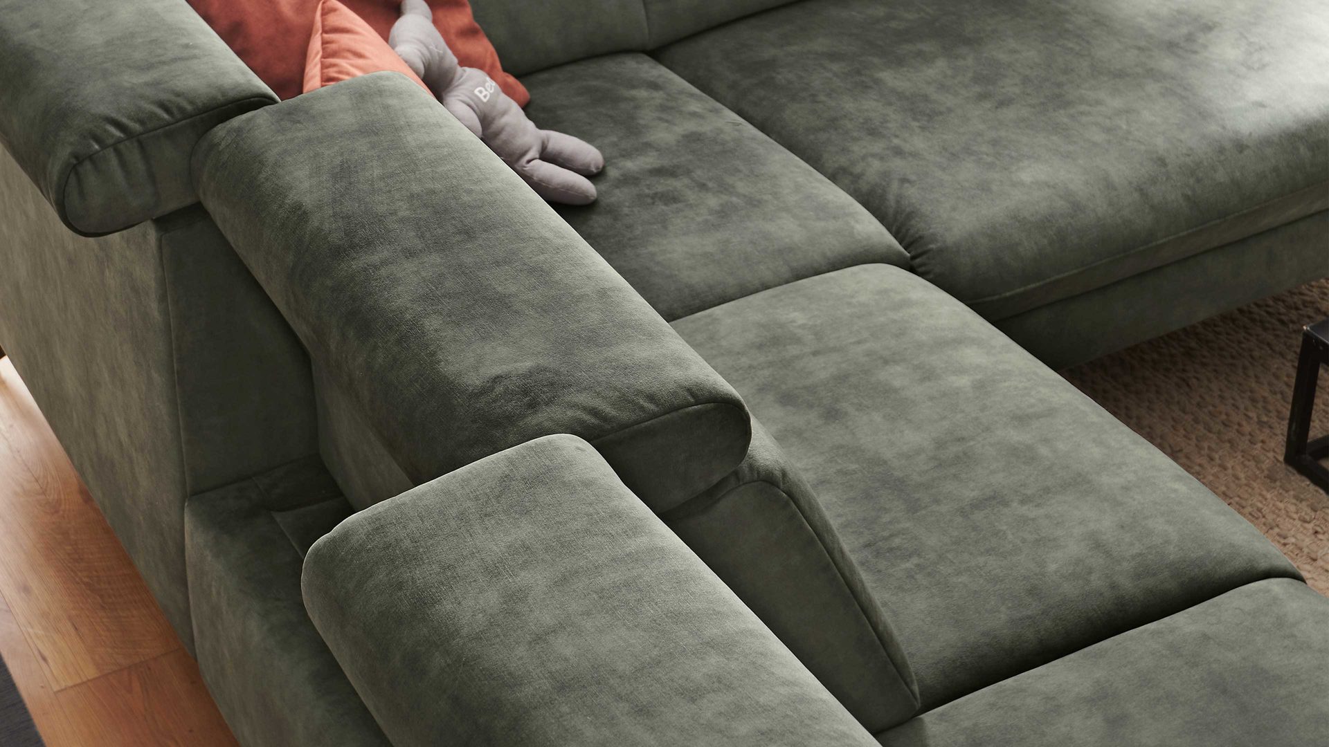 moosfarbener Veloursbezug in Samtoptik und hochwertige Polyätherschaumfüllung