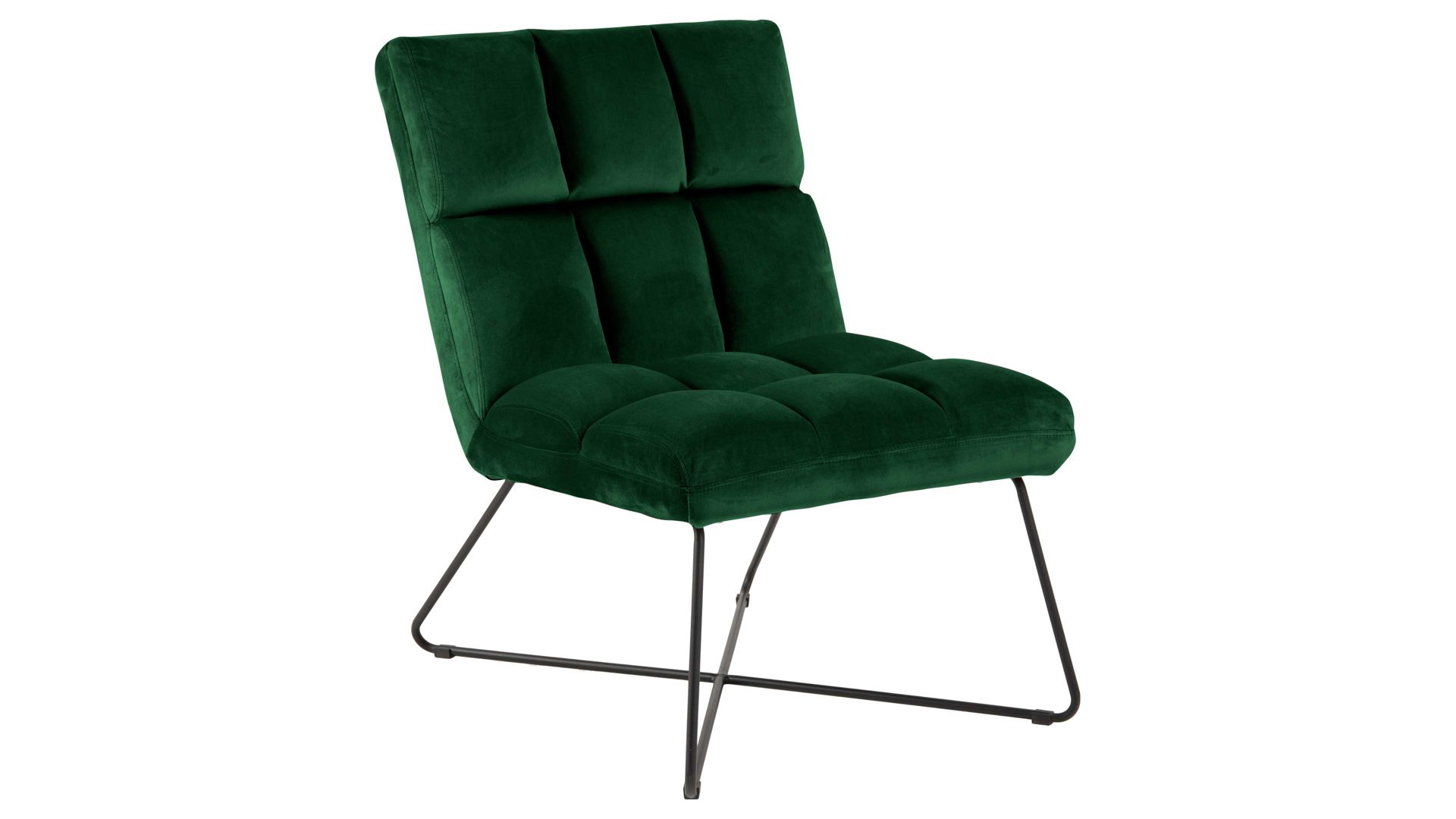 Auch farblich erlaubt der Loungesessel angenehme Freiheit beim Kombinieren: Dafür sorgt der graubraune Samtbezug. Der weiche Stoff umhüllt sowohl die Sitzfläche als auch die gesteppte Rückenlehne inklusive der bequemen Armlehnen herrlich soft. Das rau pulverbeschichtete Metallgestell fließt in sattem Schwarz stimmig in das Gesamtbild ein.