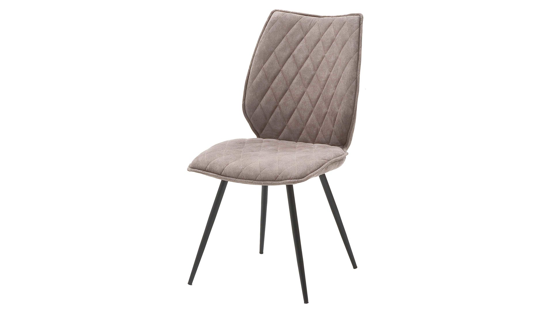 Der Polsterstuhl Navarra kommt in einem ausdrucksstarken Design: Sitz- und Rückenfläche weisen eine dekorative Rautensteppung auf. Sie werden rundum von einem Stoffbezug im Antiklook umhüllt. Der Bezug in einem hellen Sandton trifft auf ein anthrazitfarben lackiertes und konisch zulaufendes Rundrohrgestell.