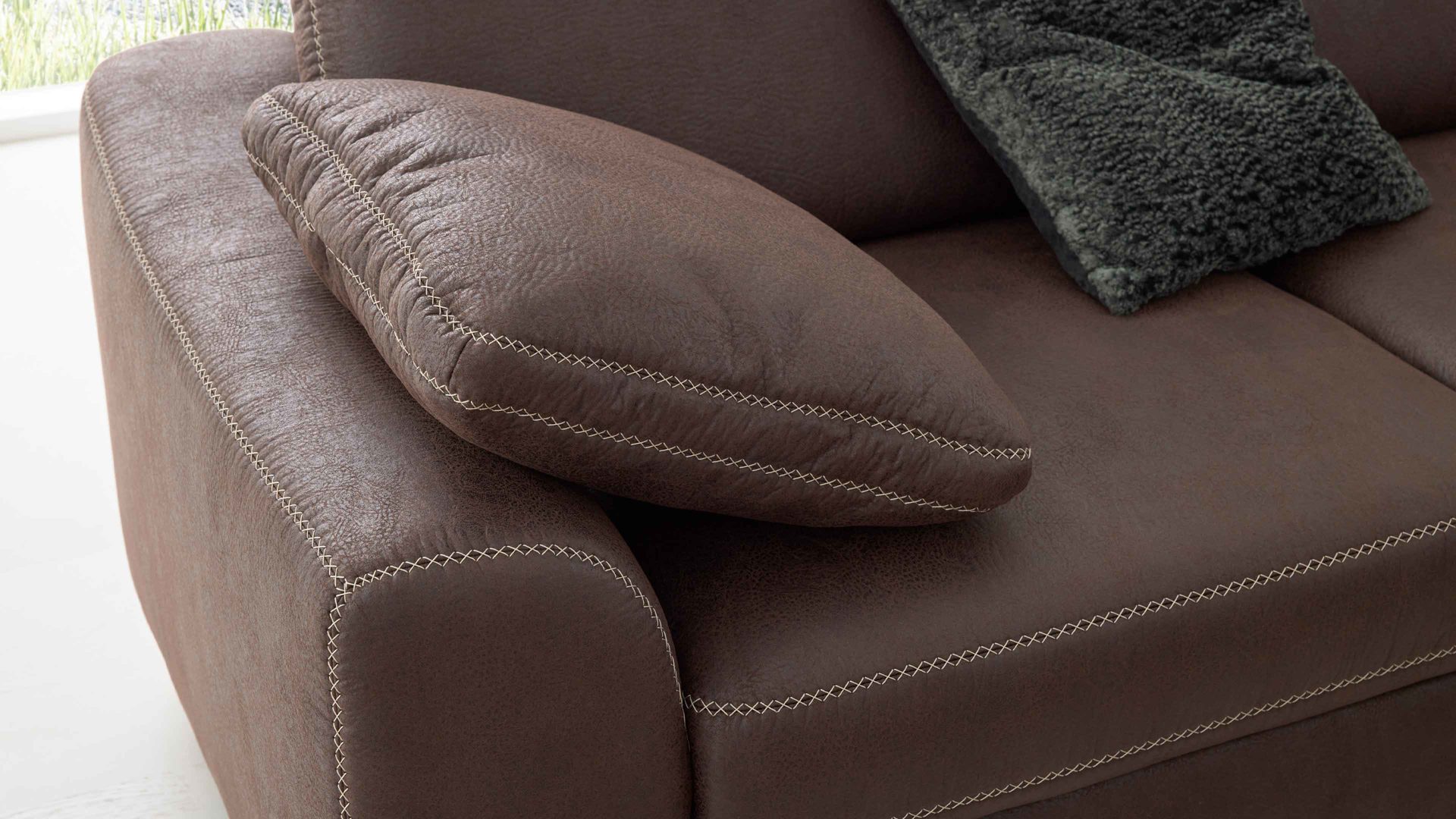 Die Kopfstütze ist ein stilvolles und bequemes Zubehör für diverse Polstermöbel aus dem Modulmaster-Programm MM-ZE1037. Durch den moccafarbenen Mikrofaserbezug mit edler Prägung und beigefarbener Kreuzstichnaht sowie die Kopfstützen-Vorrichtung aus verchromtem Metall präsentiert es sich modern-elegant. Die Maße der Kopfstütze belaufen sich auf ca. 44 x 32 x 10 cm (BxHxT).