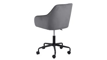 Dabei harmoniert der Drehstuhl in seiner sanften Formensprache mit zahlreichen Einrichtungsstilen: Dafür sorgt der dunkelgraue Samtbezug, der die gesamte Sitzschale inklusive der bequemen Armlehnen weich umhüllt. Das pulverbeschichtete Metall-Drehkreuz fließt in mattem Schwarz stimmig in das Gesamtbild ein.