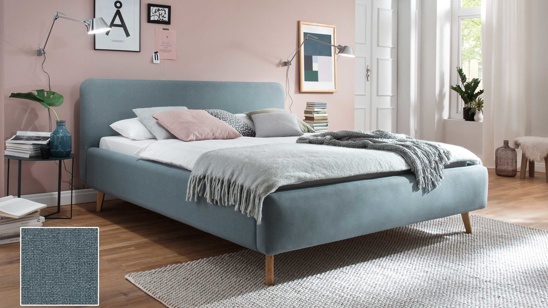 eisblaues Flachgewebe Aspen 84 & Holzfüße - Liegefläche ca. 140 x 200 cm