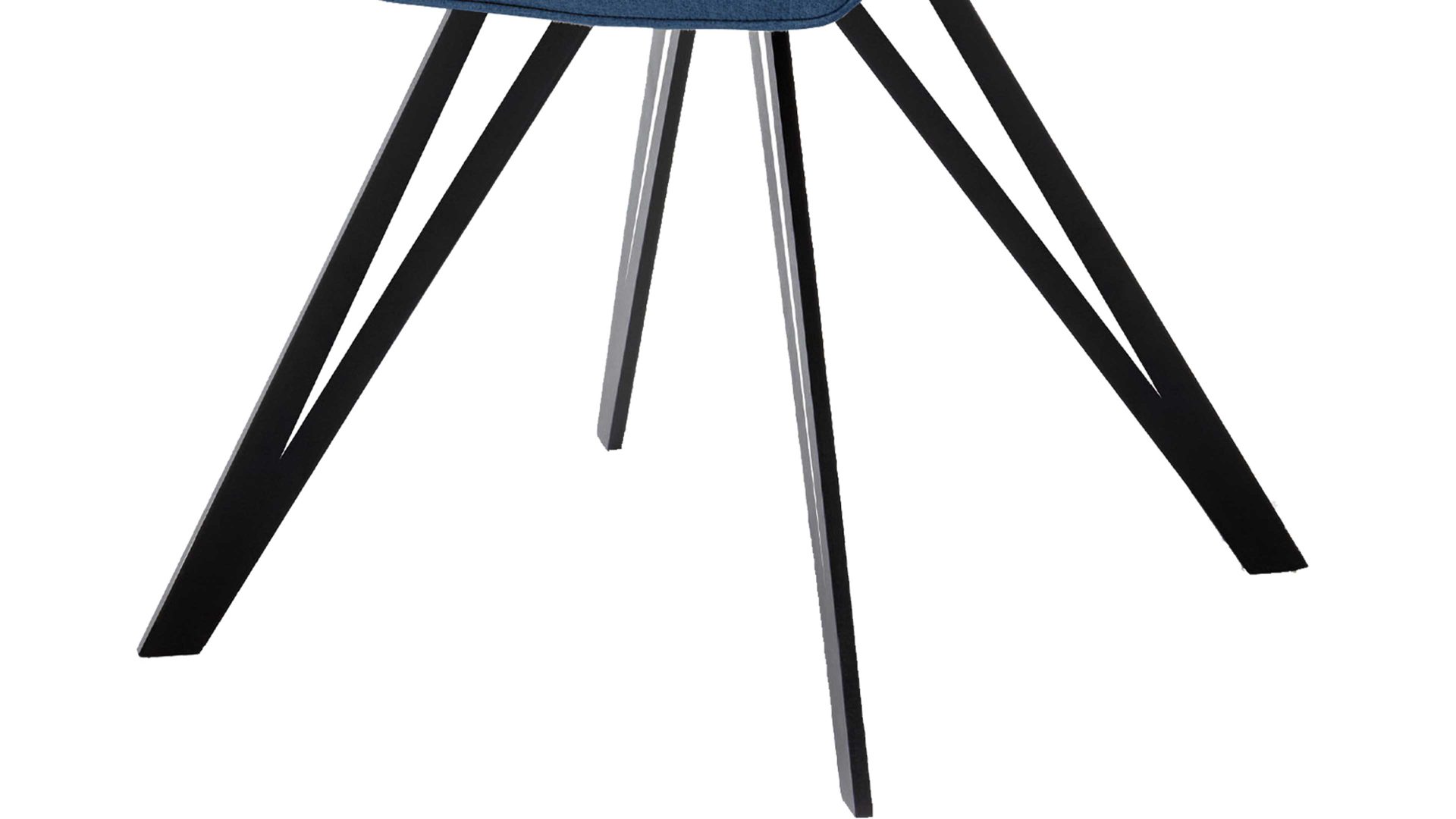 Der Armlehnstuhl Merlot präsentiert sich modern, kreativ und stilvoll designt. Er kombiniert einen blauen Webstoffbezug mit einem schwarz pulverbeschichteten Vierfuß-Flachstahlgestell. Letzteres sorgt für eine stabile Basis sowie für puristisch-elegantes Flair im Esszimmer. Dazu trägt auch der tiefe Farbton des hochwertigen, angenehm weichen Stoffbezugs bei. Überdies unterstreicht die spezielle Formensprache des Gestells die originelle Ausstrahlung des Vierfußstuhls.