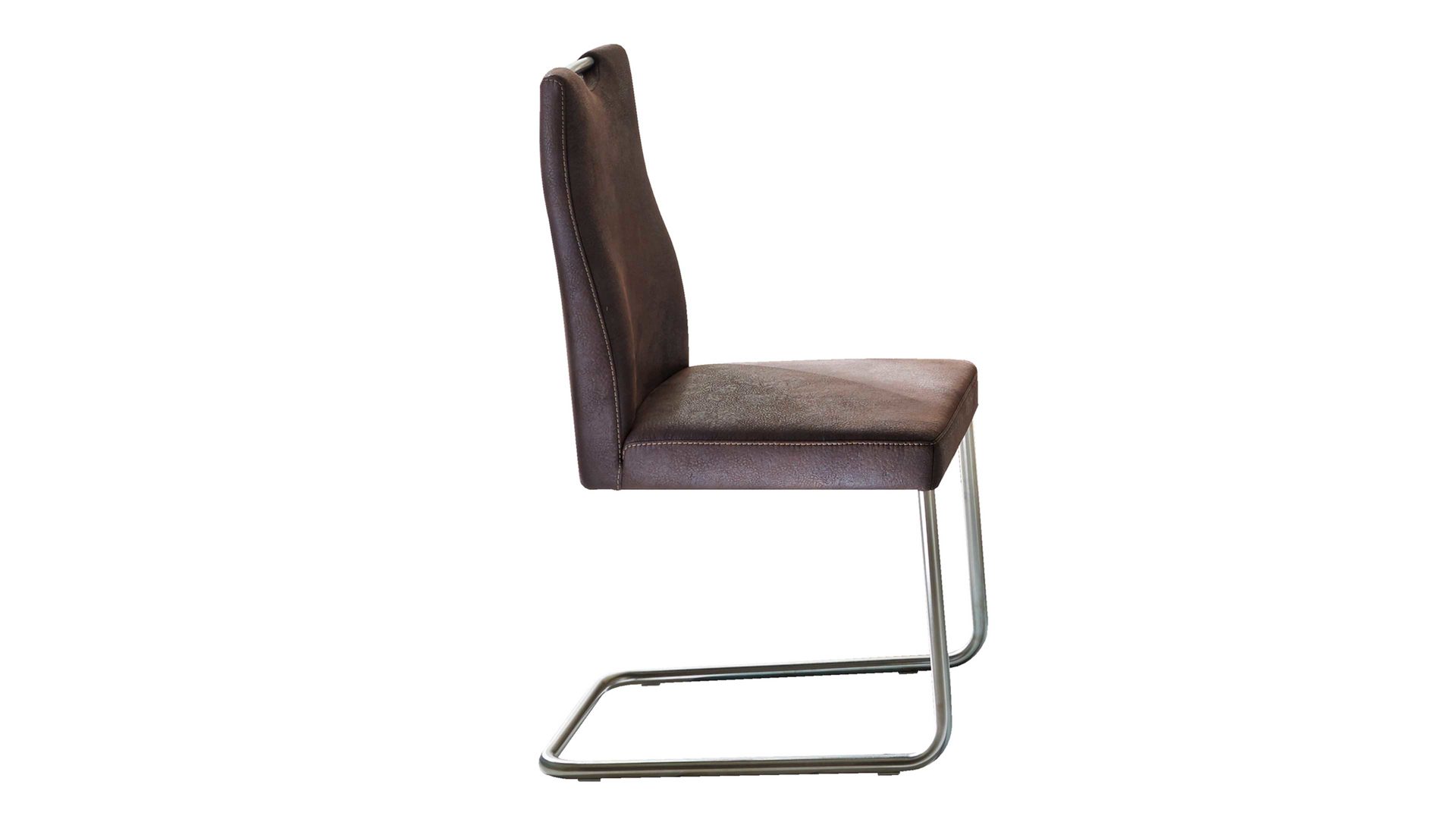 Der komfortable Polsterstuhl begeistert im zeitlosen Design, das sich hervorragend in Ihr Esszimmer oder Ihre Küche einfügt. Das Rundrohrgestell in Edelstahloptik harmoniert dabei hervorragend mit dem dunkelbraunen Mikrofaserbezug – dieser Materialmix ist ein wohnlicher Kontrast, der Blicke auf sich zieht. Ebenfalls überzeugend sind diese Maße: ca. 47 x 97 x 60 cm (BxHxT) bei einer Sitzhöhe von ca. 50 cm.