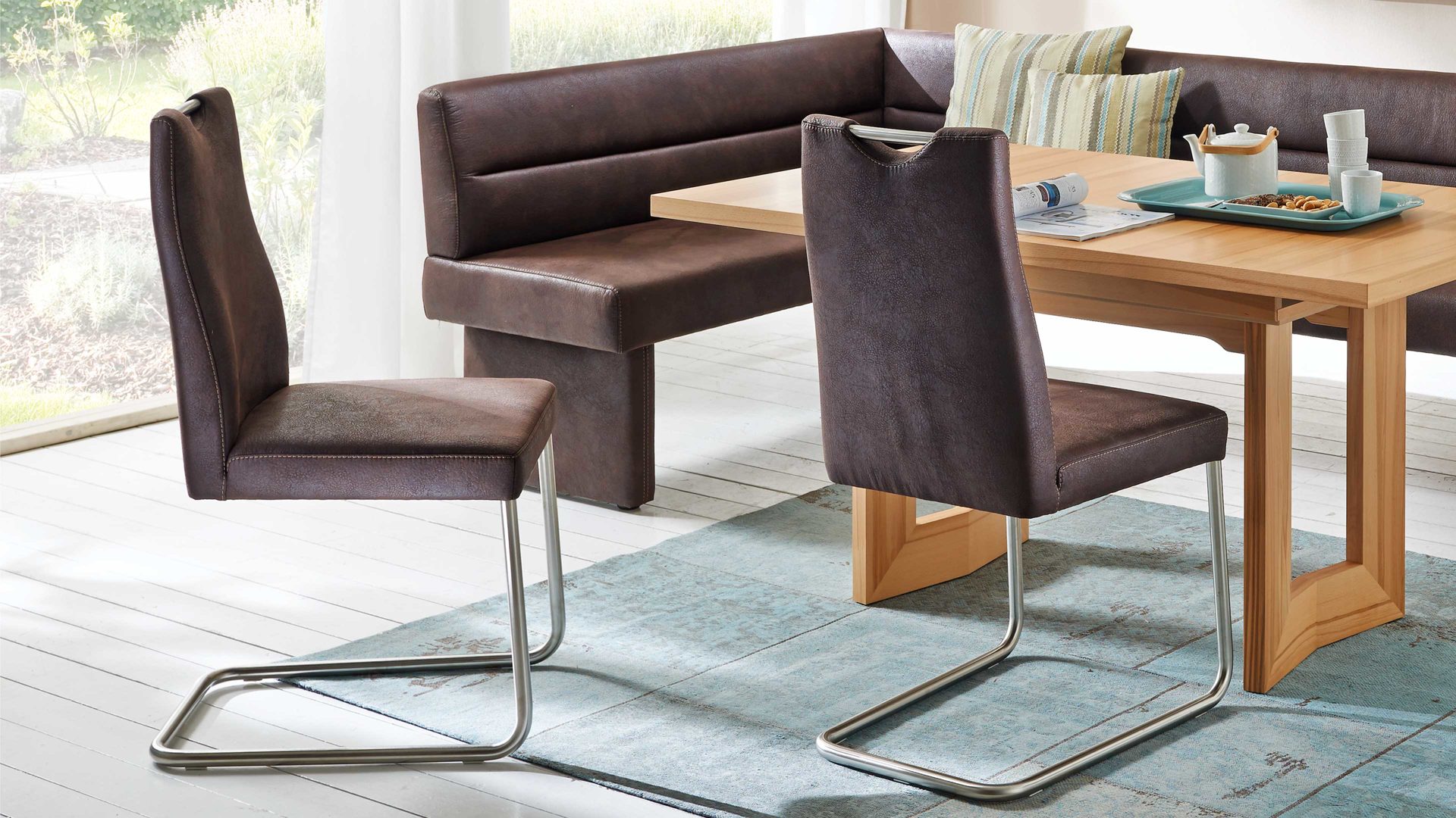 Nutzen Sie zur individuellen Gestaltung Ihrer Essecke den Typenplan, der Ihnen eine große Auswahl an Bezügen bietet. Aus der gleichen Serie sind weitere stilvolle Sitzmöbel erhältlich.