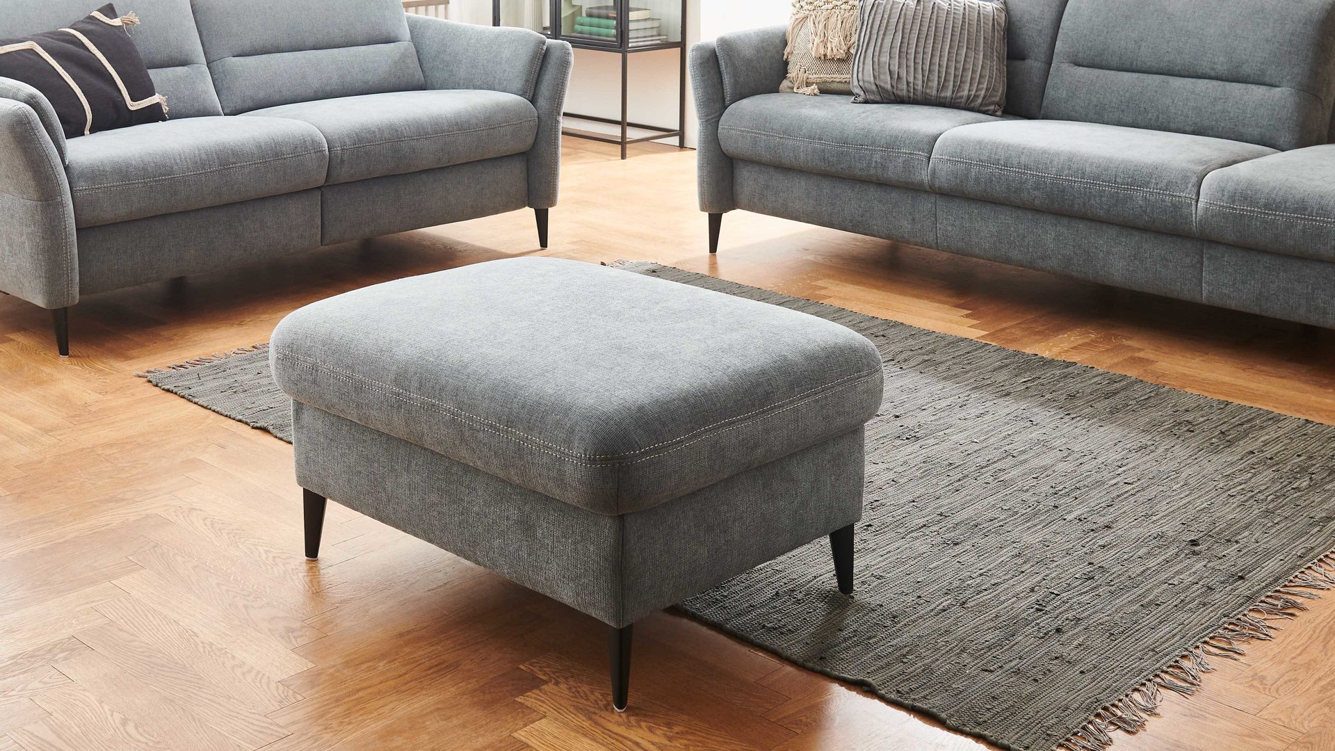 stahlfarbener Stoffbezug Milan & schwarze Metallfüße - Länge ca. 213 cm