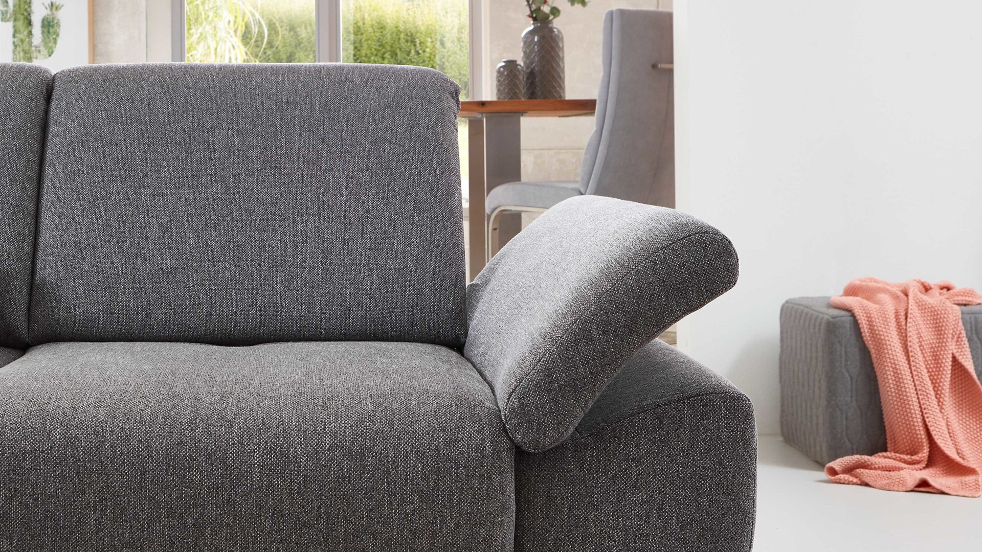 Entdecken Sie jetzt die manuelle Armlehnverstellung des Polsterprogramms Tiamo Plus und erleben Sie Komfort auf einem neuen Level. Gönnen Sie sich ein Stück Luxus und genießen Sie entspannte Stunden in Ihrem Zuhause.