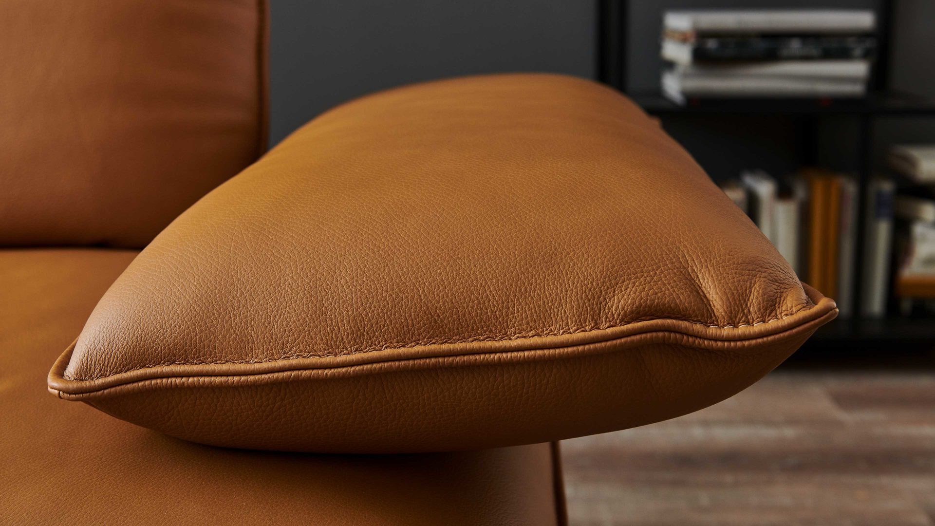 Die legere lockere Polsterung sorgt für höchsten Sitzkomfort und lädt zum Entspannen ein. Das echtlederbezogene Rückenteil gibt dem Sofa eine edle Optik und macht es zu einem echten Blickfang.