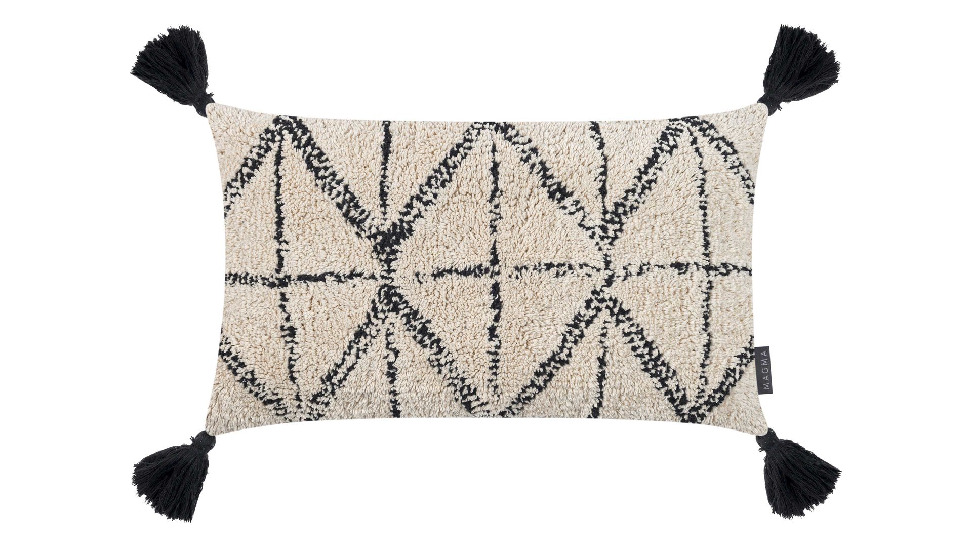 Vorderseite im schwarz-weißen Berberteppich-Look, 100 % Baumwolle